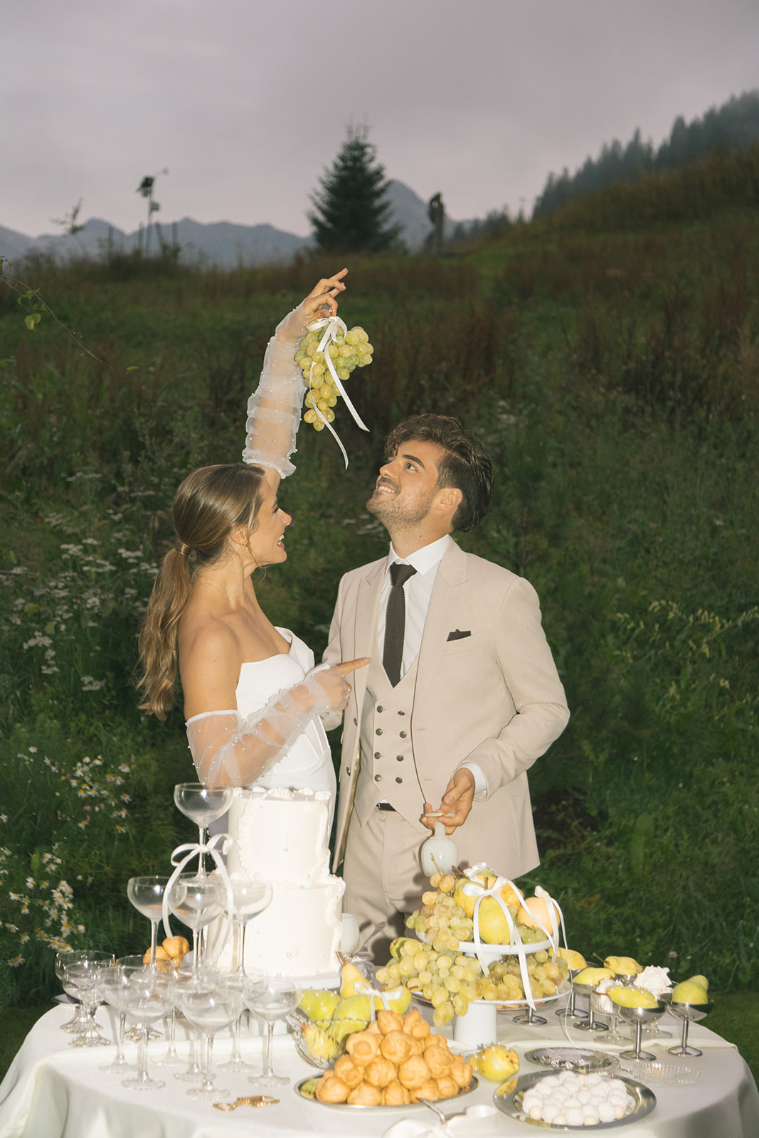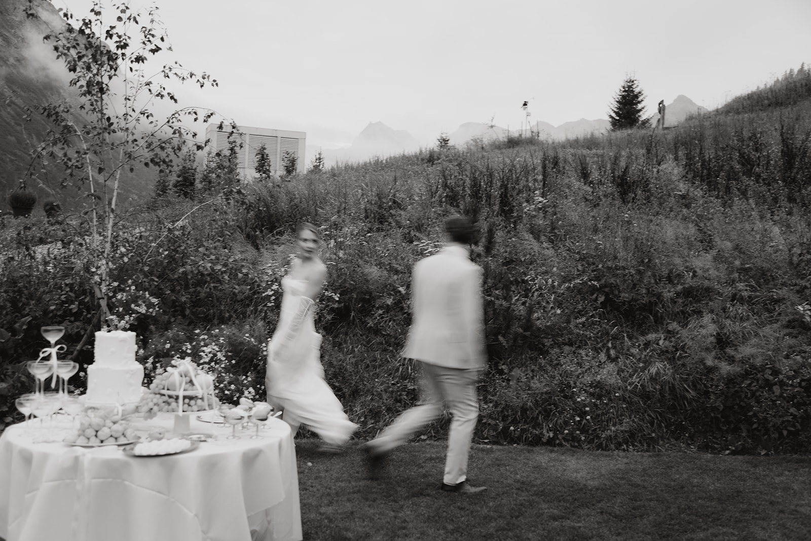 Most people imagine a traditional mountain wedding in traditional costume, with white and red checkered tablecloths and rustic dark wood.