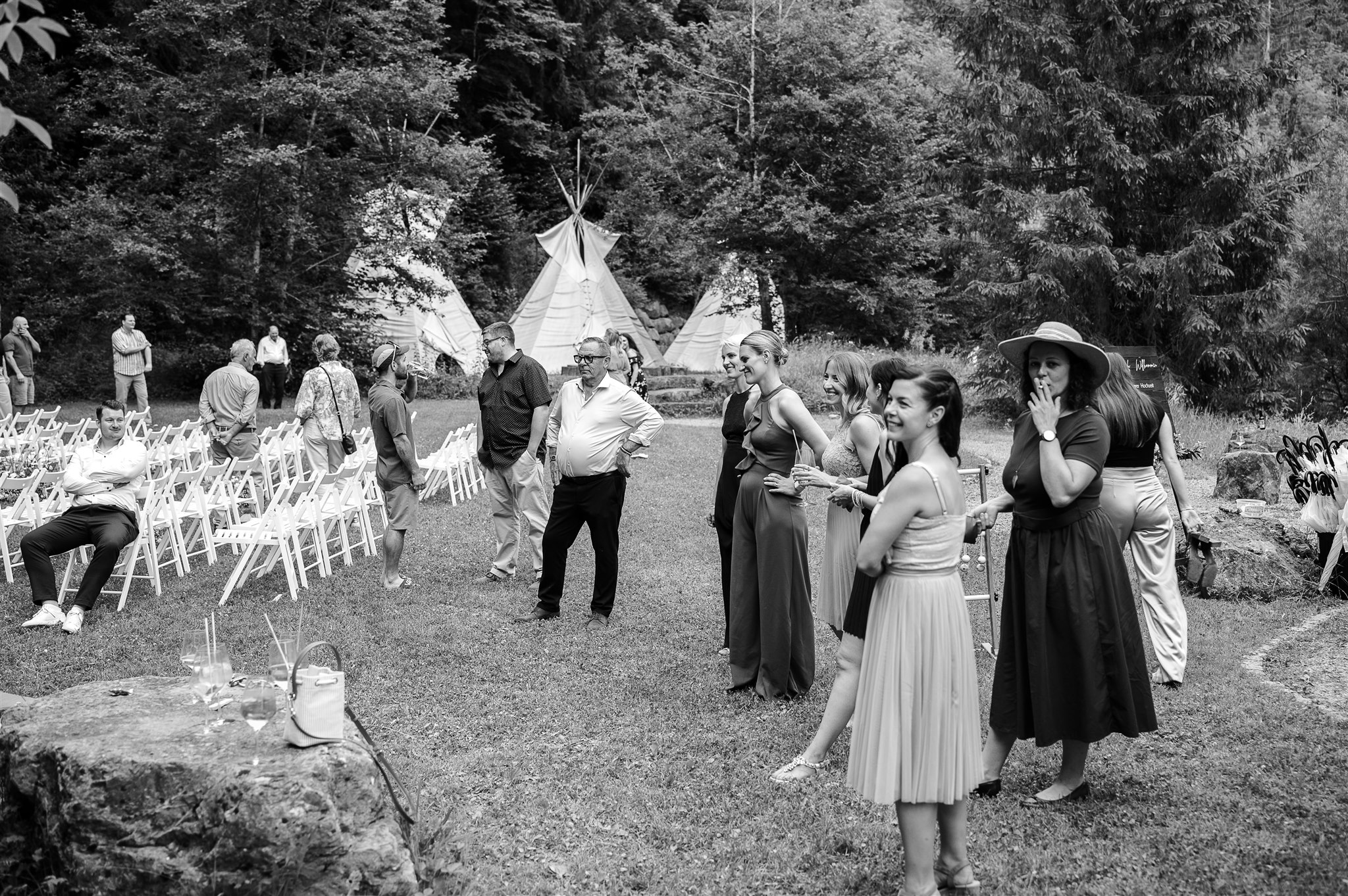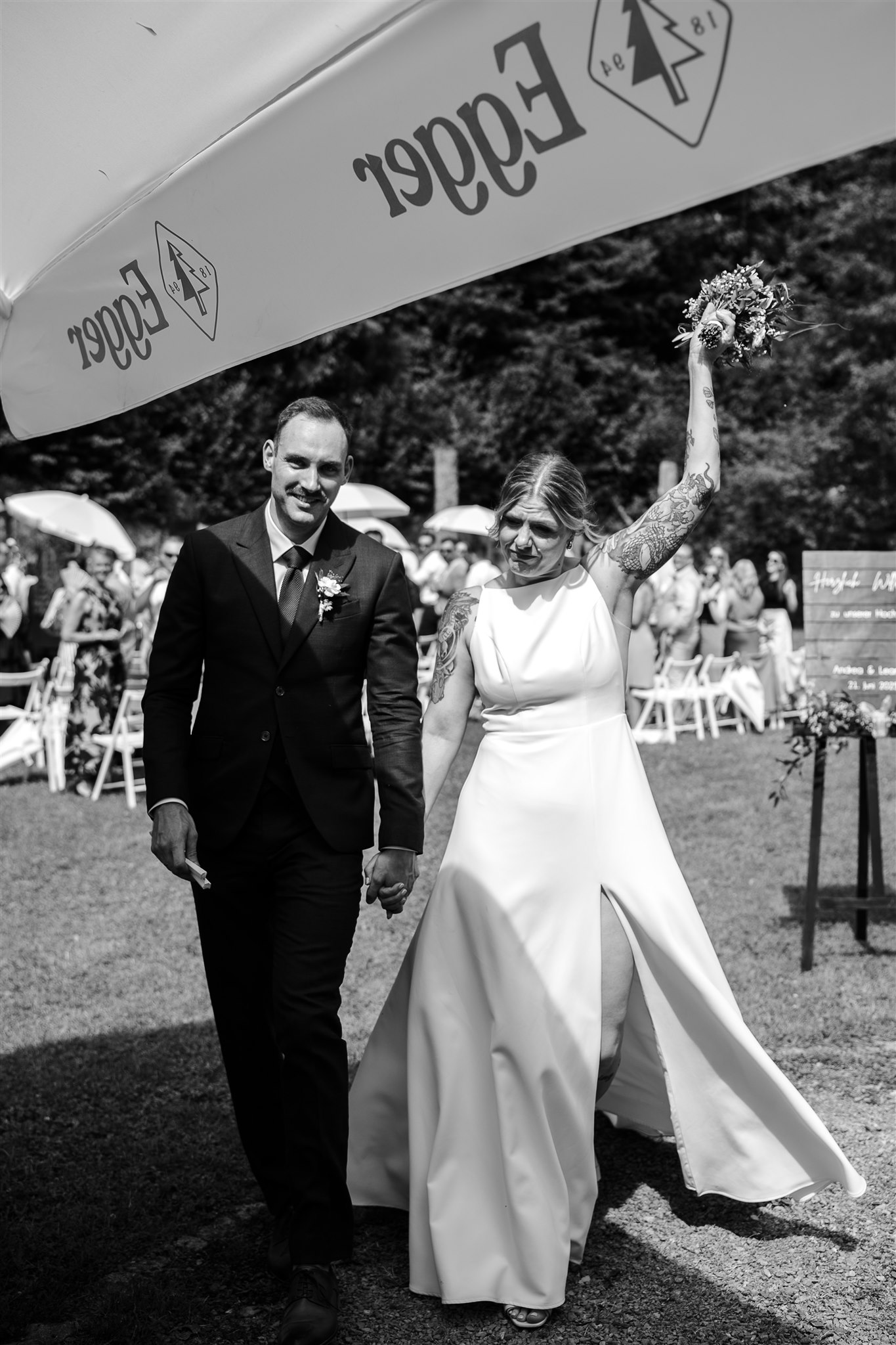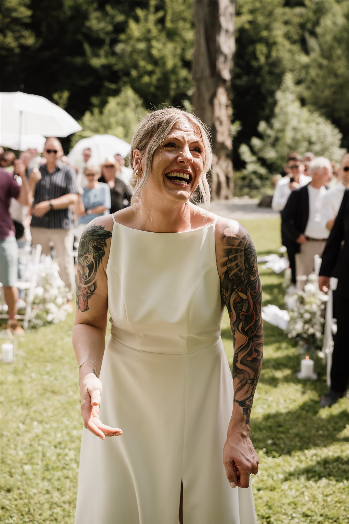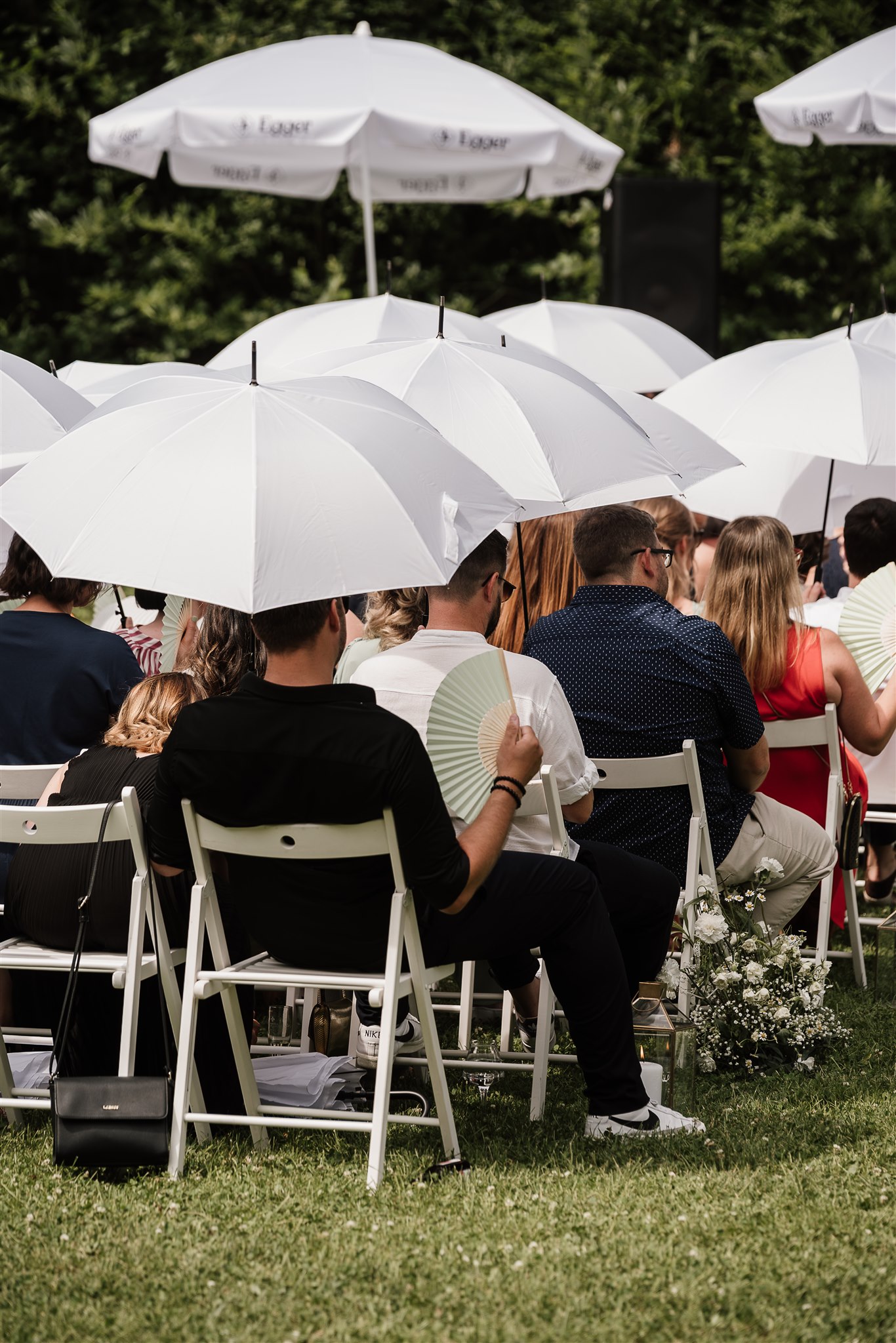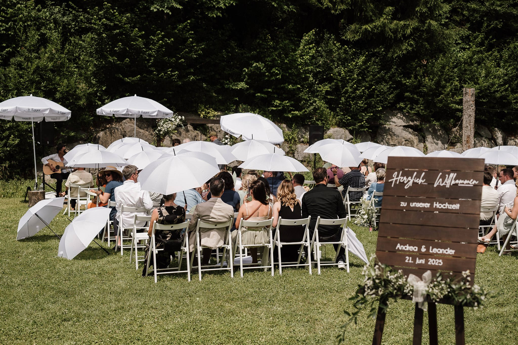 The free wedding ceremony is accompanied by live music - emotional, touching and with a view of nature. Afterwards, friends and family clink glasses over an aperitif while the barbecue glows in the background.