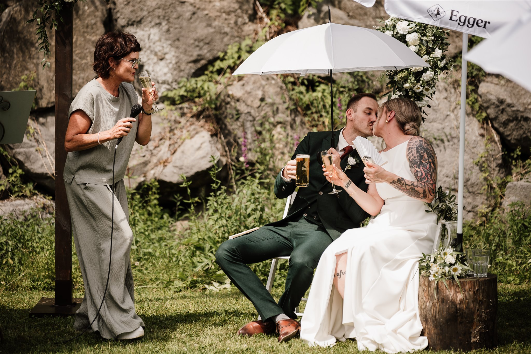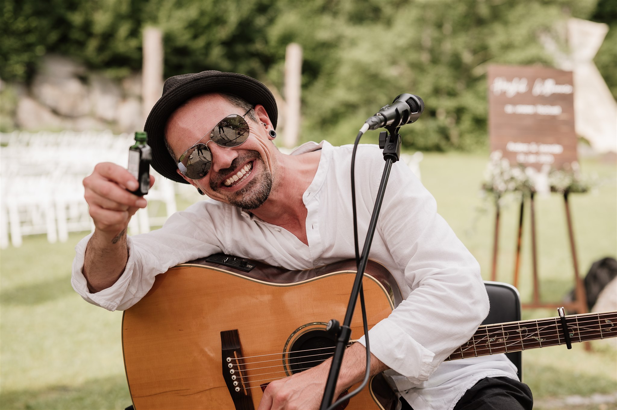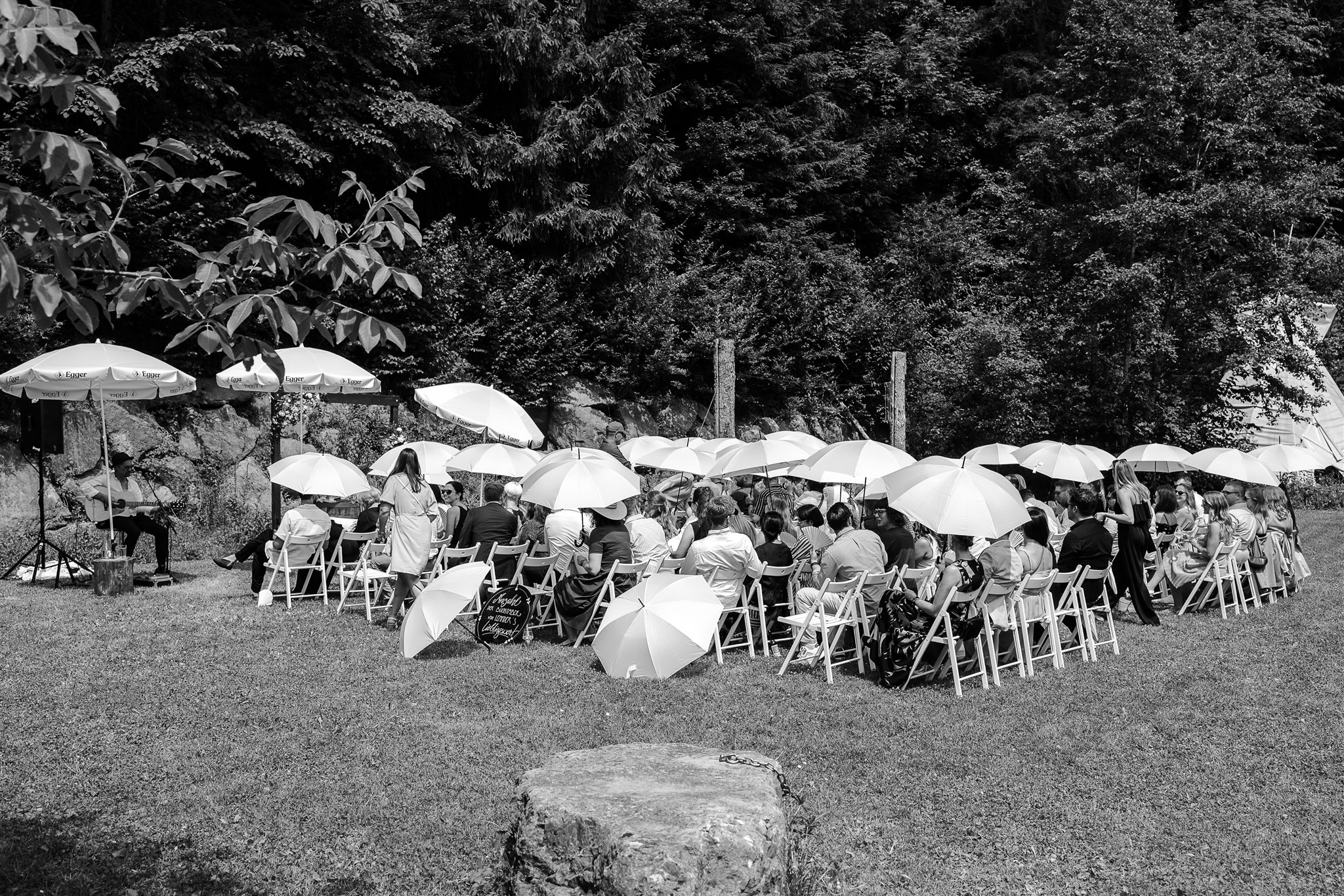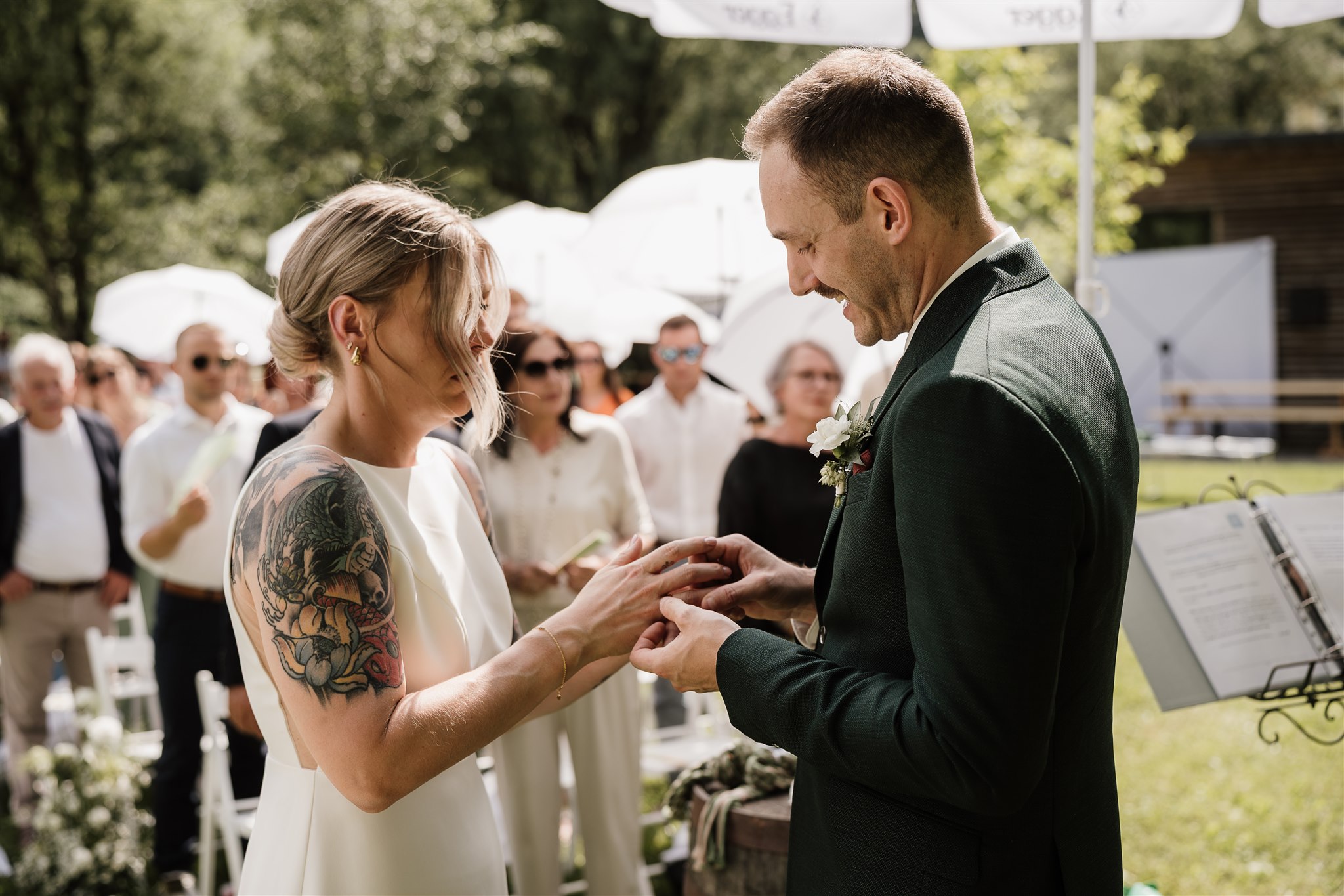 The free wedding ceremony is accompanied by live music - emotional, touching and with a view of nature. Afterwards, friends and family clink glasses over an aperitif while the barbecue glows in the background.