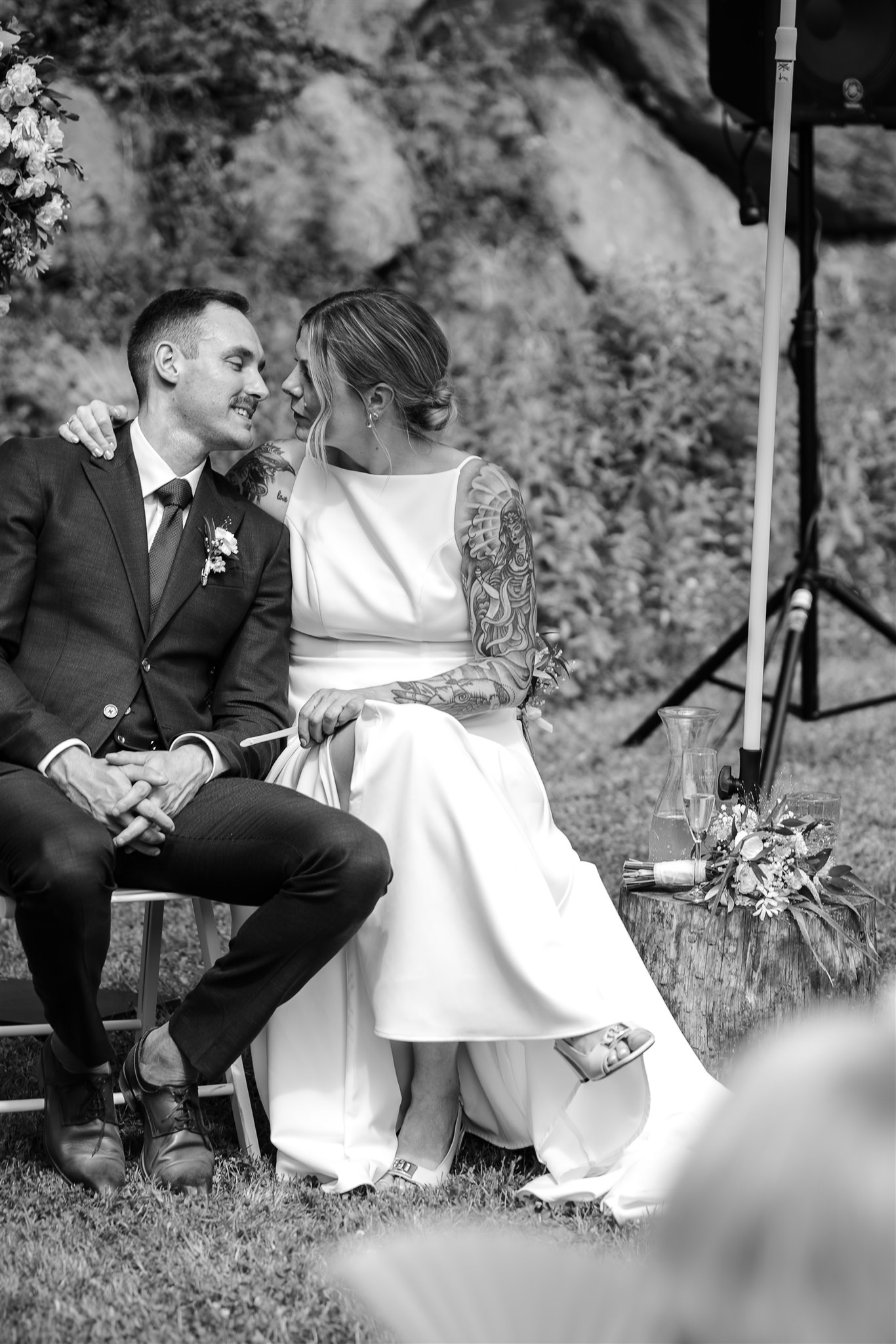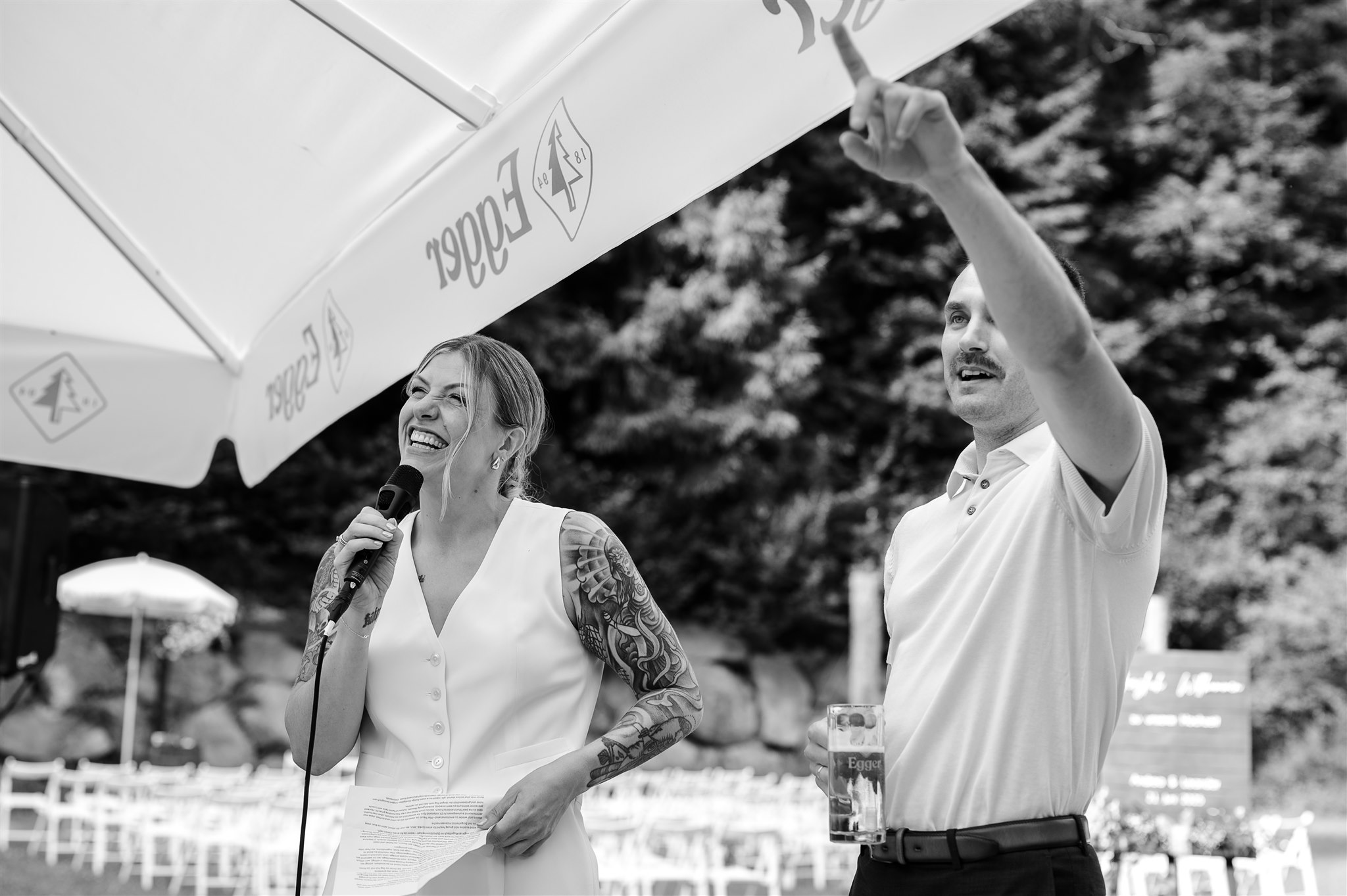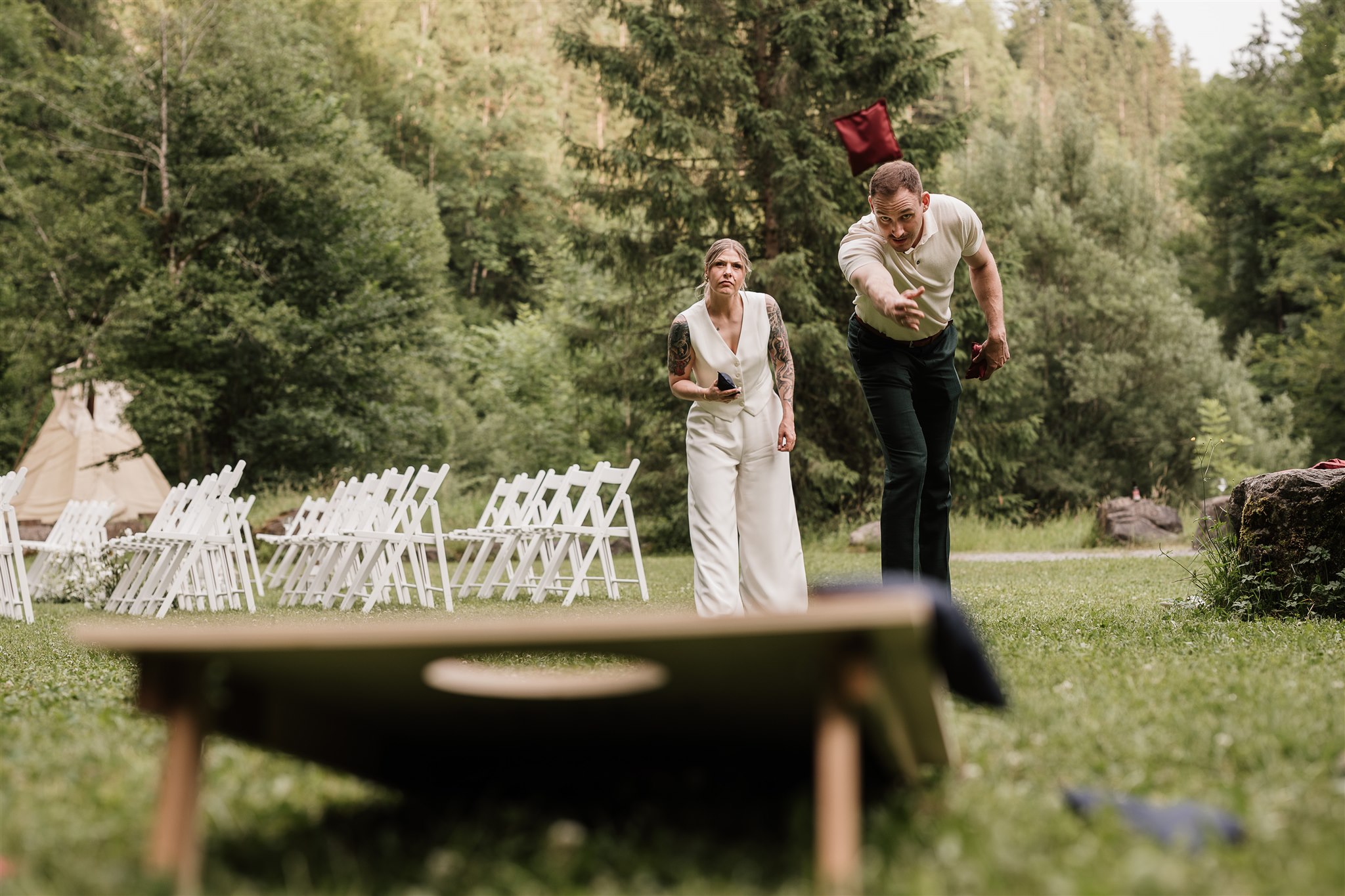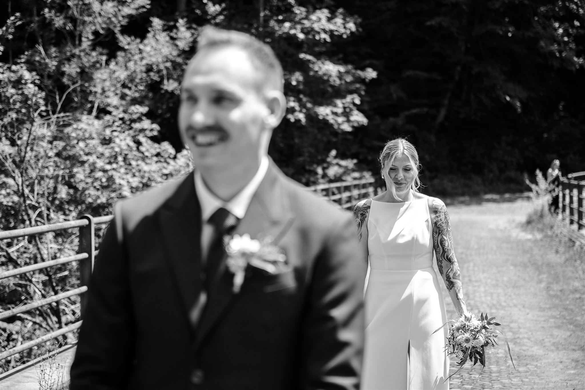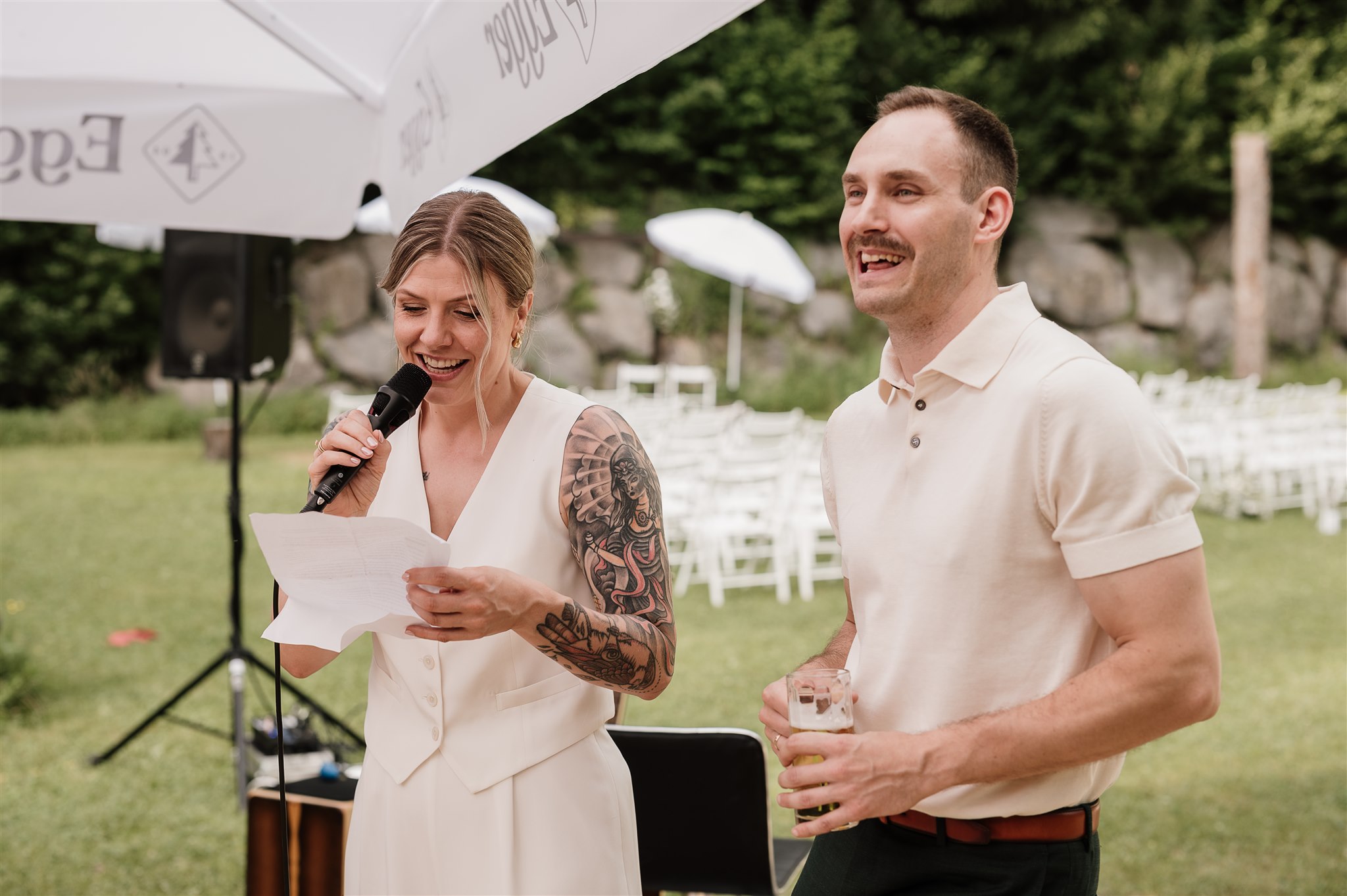The free wedding ceremony is accompanied by live music - emotional, touching and with a view of nature. Afterwards, friends and family clink glasses over an aperitif while the barbecue glows in the background.