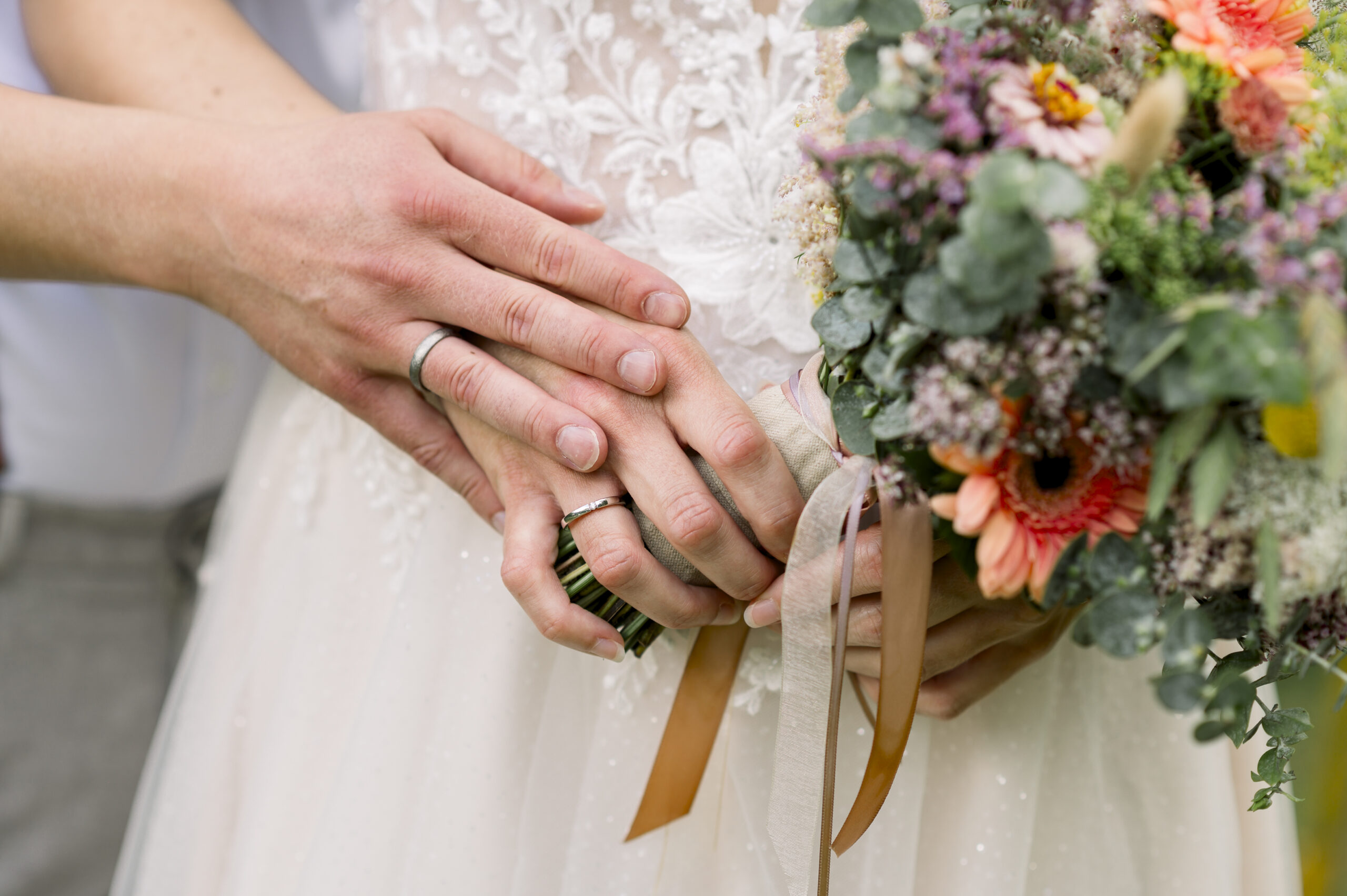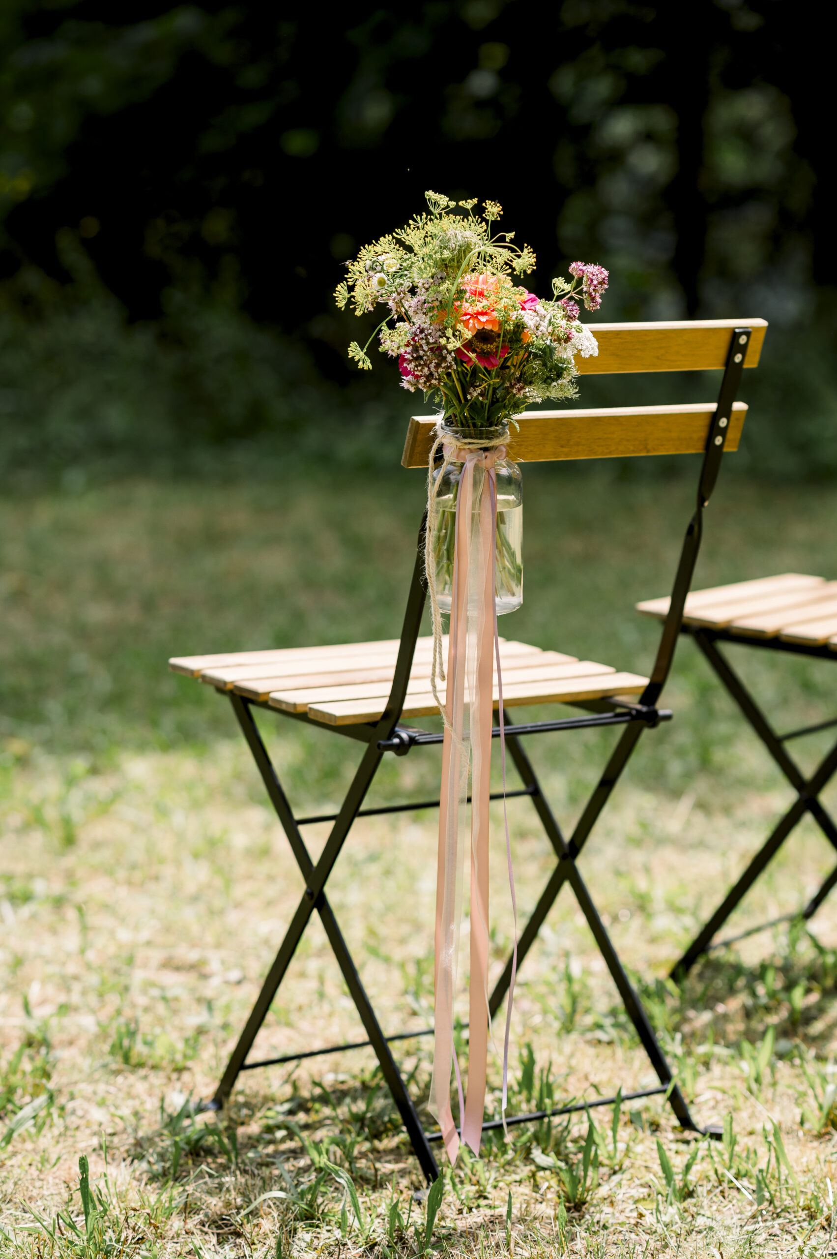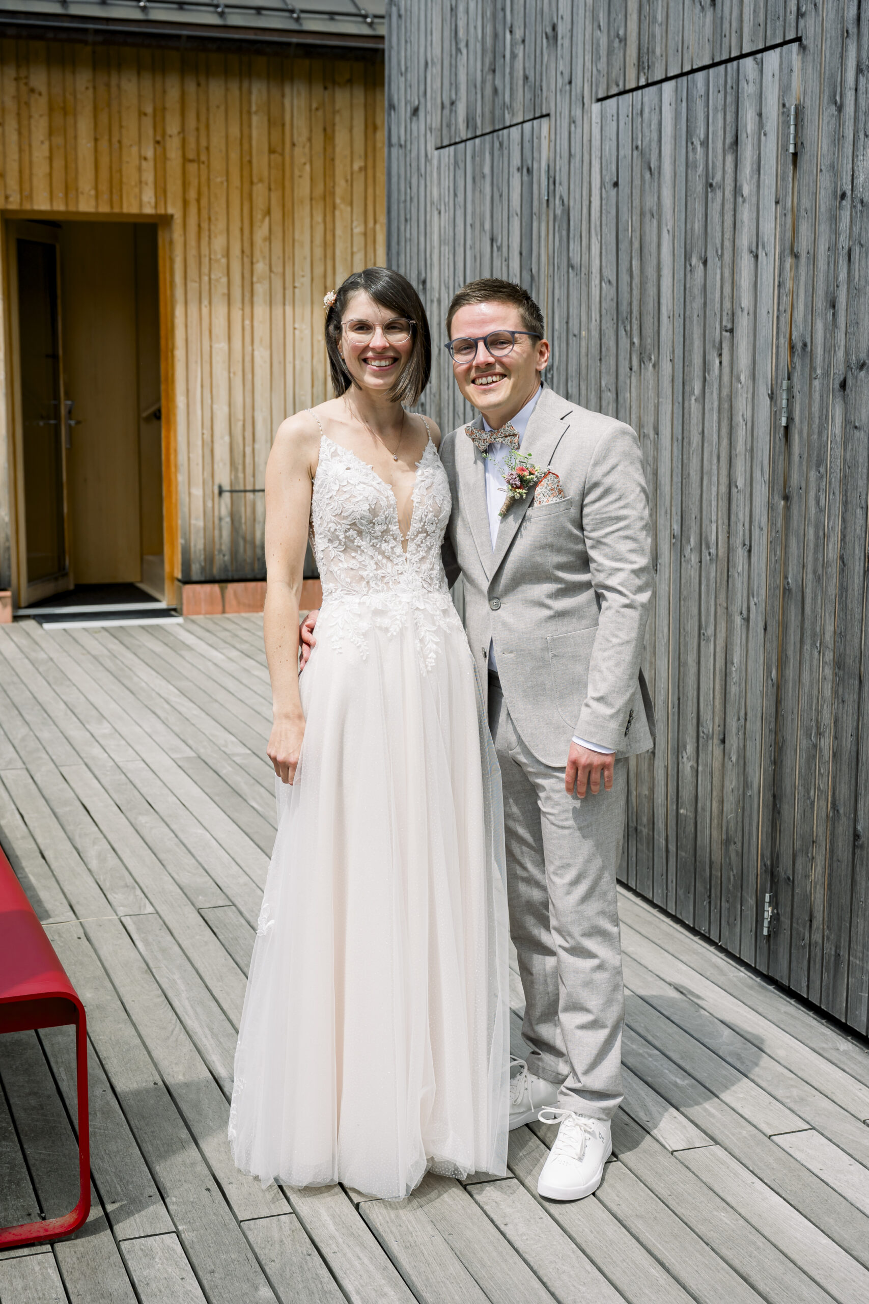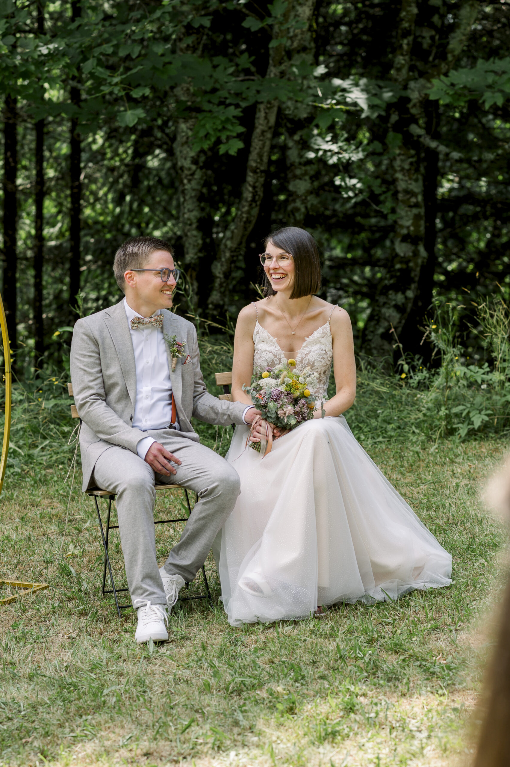 The free wedding ceremony was the emotional highlight: lovingly prepared, with colorful meadow flower decorations, cheerful, stylish - and with a special surprise. The ring was hidden under one of the chairs - and whoever found it was allowed to present it to the bride and groom. An emotional and at the same time playful moment that made for many laughs.