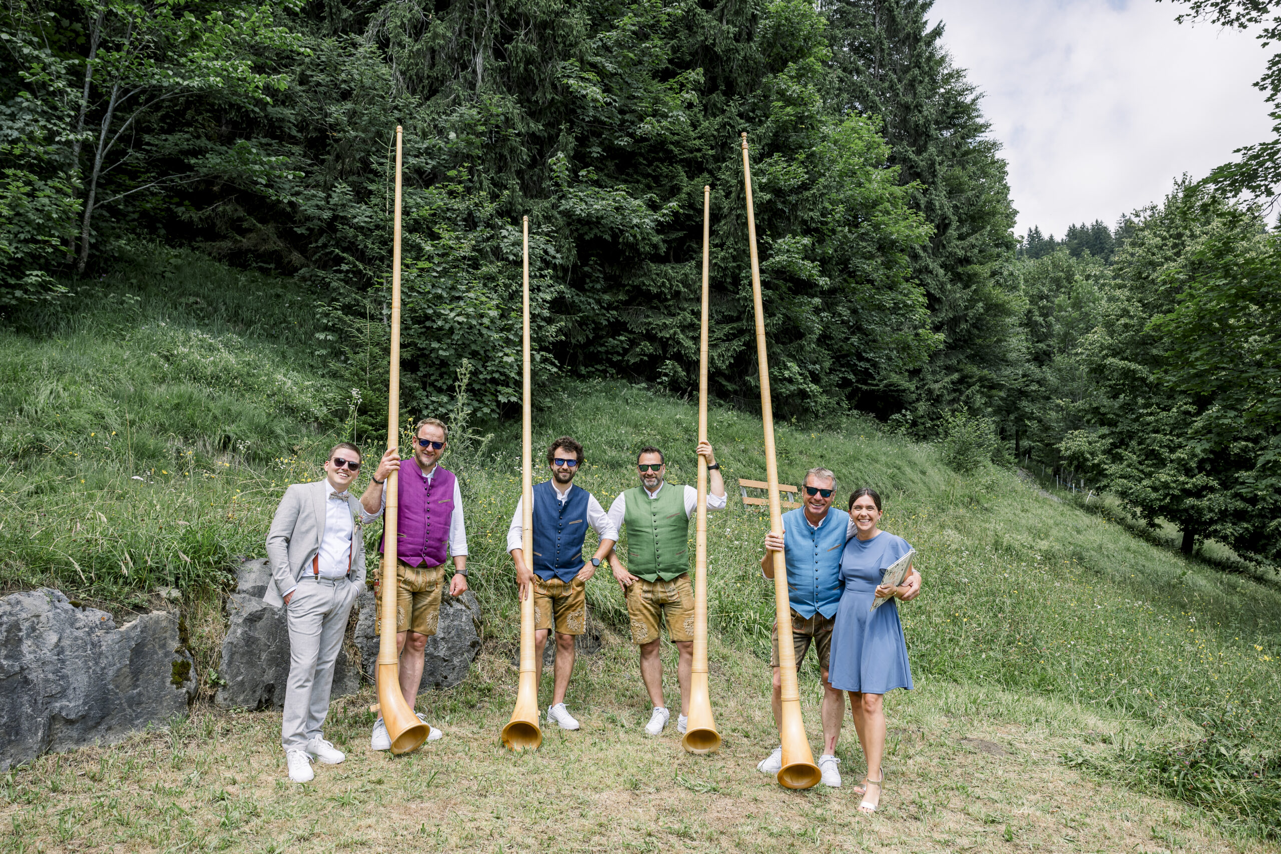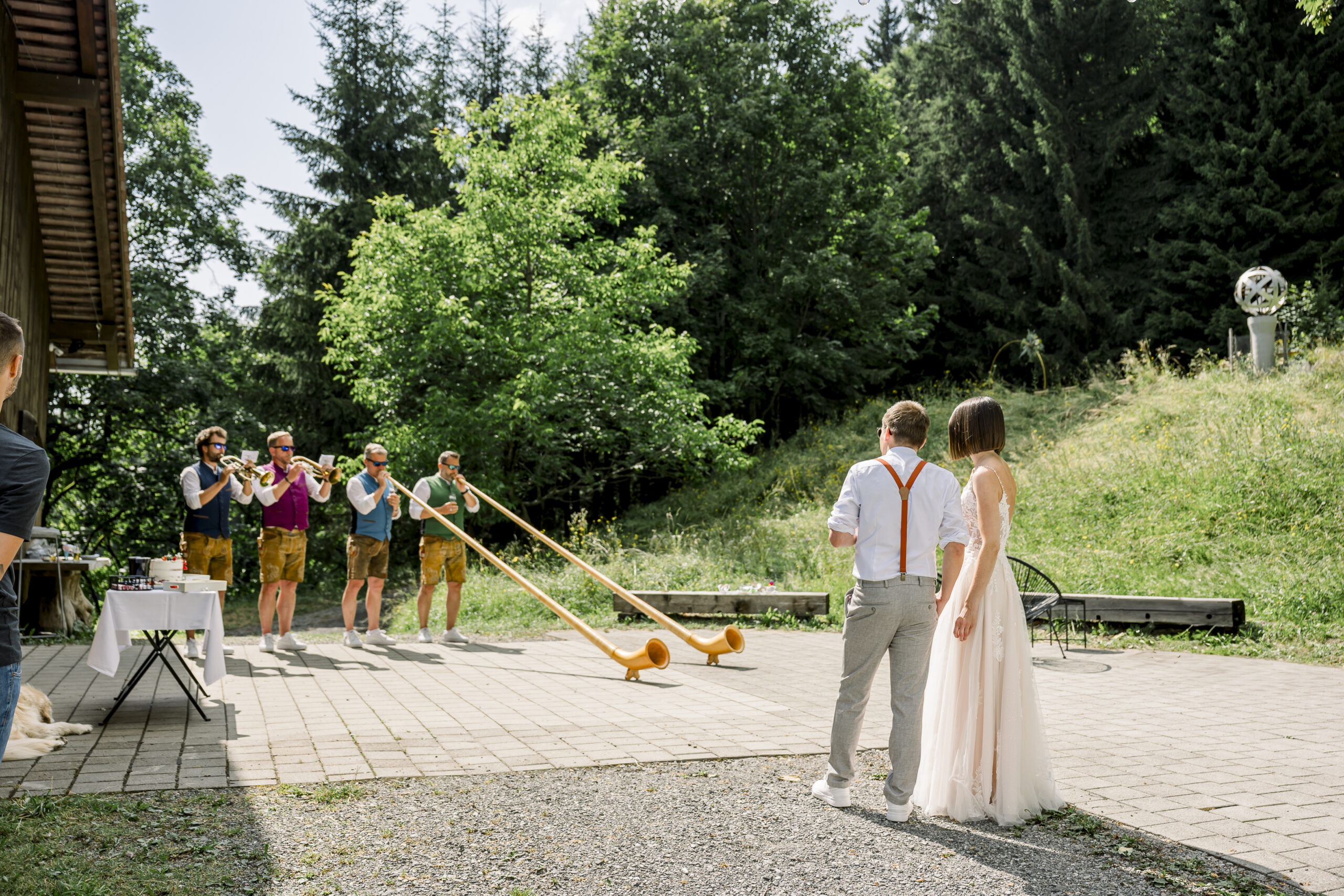 The ceremony was accompanied by a special musical highlight: the Montafon alphorn players, who also created a great atmosphere at the afternoon champagne reception with sweet table and cake cutting. The guests toasted, laughed and took photos - including cheerful souvenir photos.