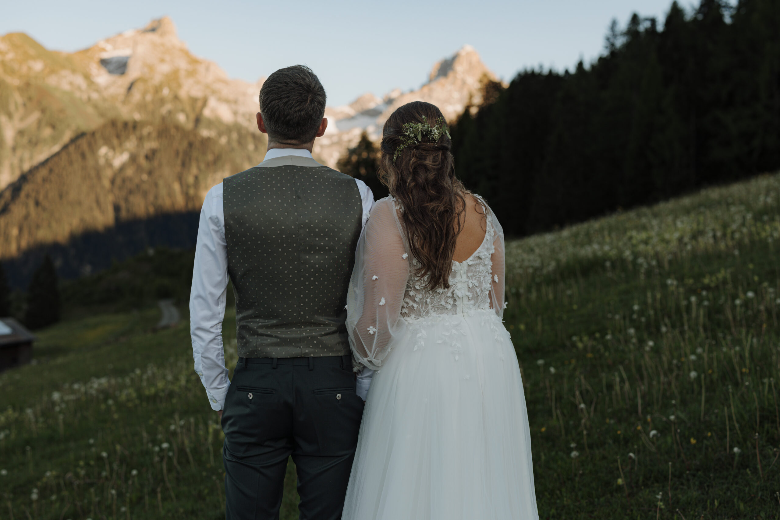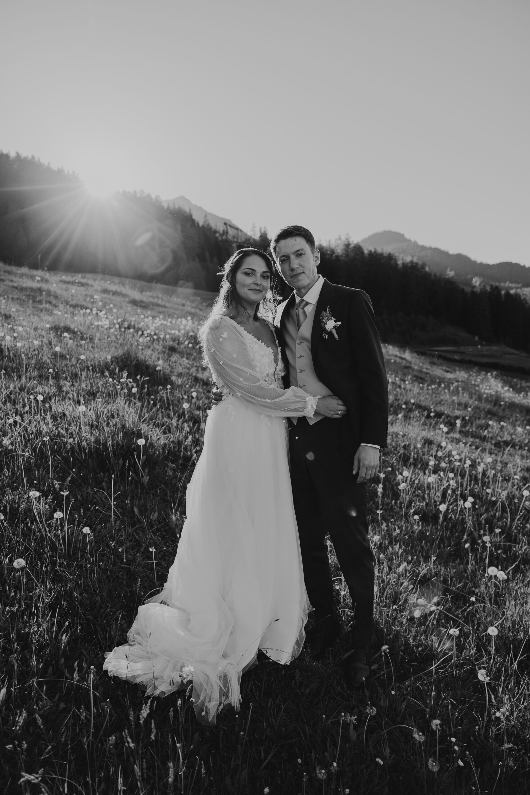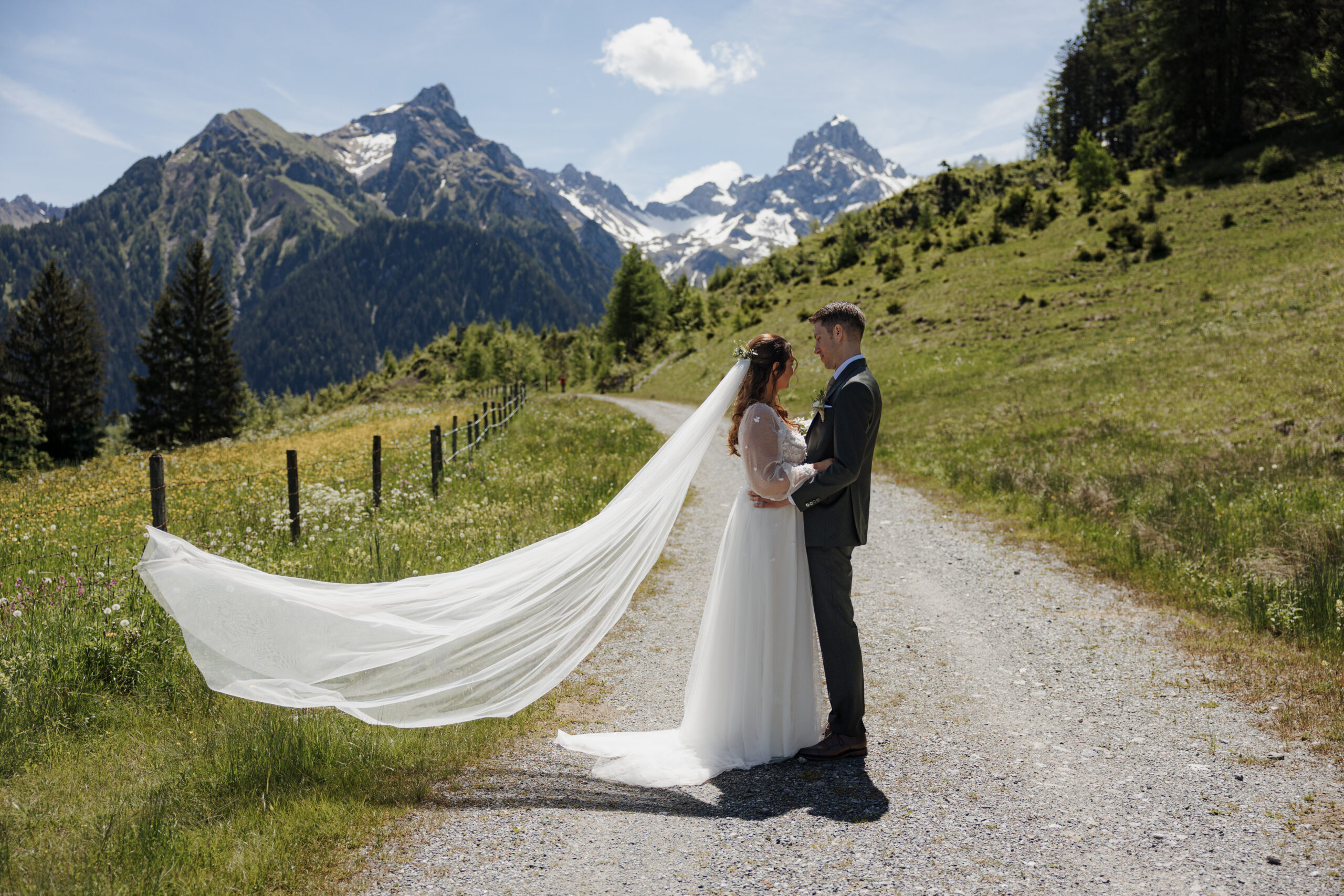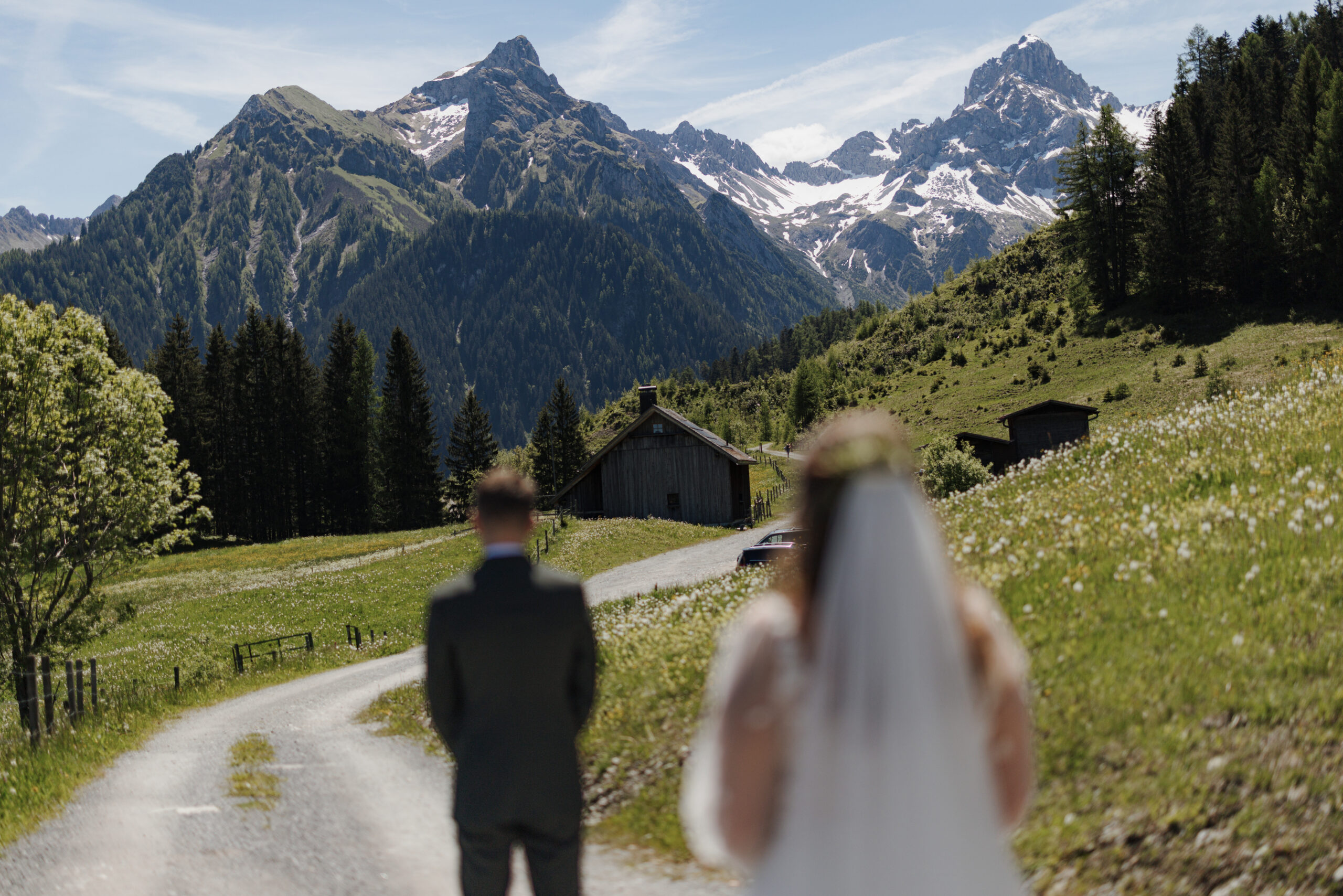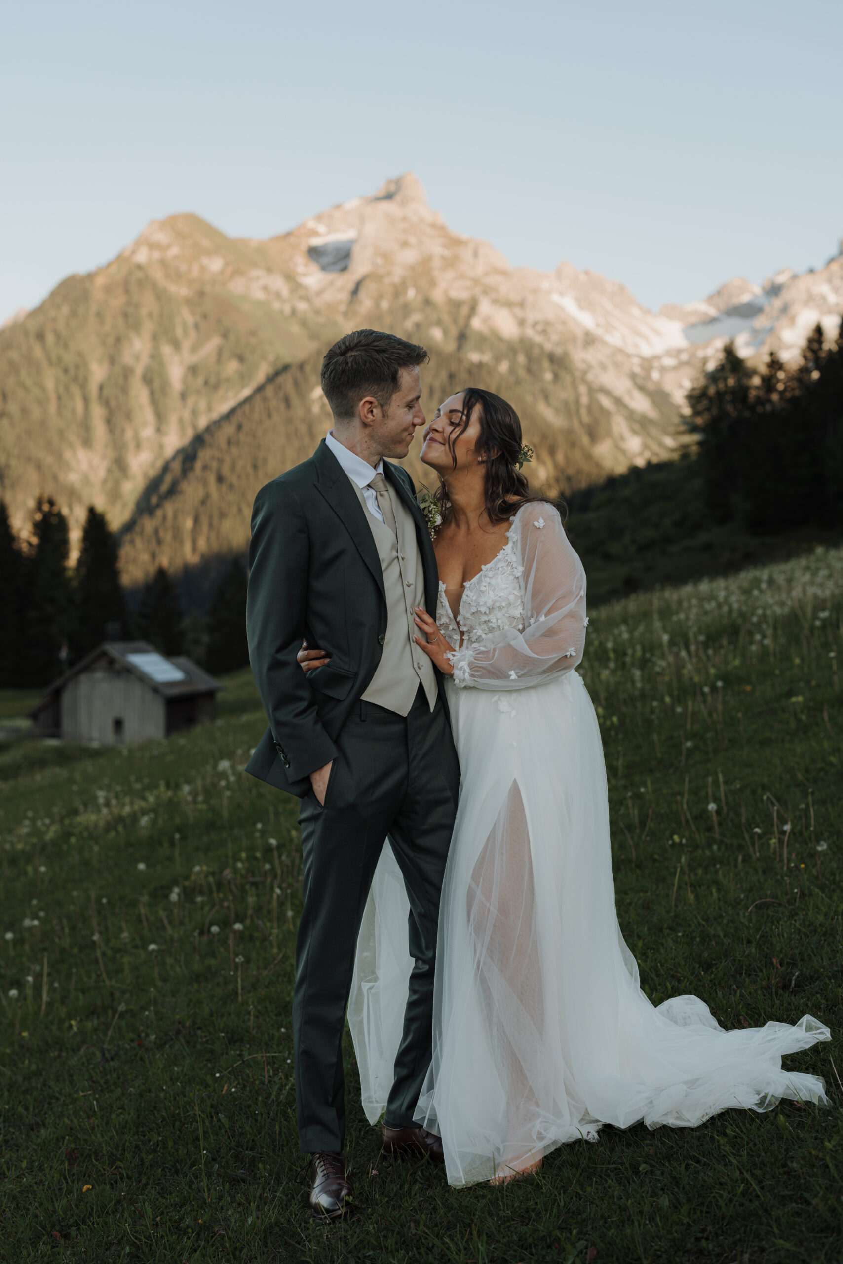 The magic of the day was already palpable during the emotional first look shoot surrounded by majestic peaks. The free wedding ceremony with a view of the Zimba touched us with a perfect blend of warmth, humor and genuine emotion.