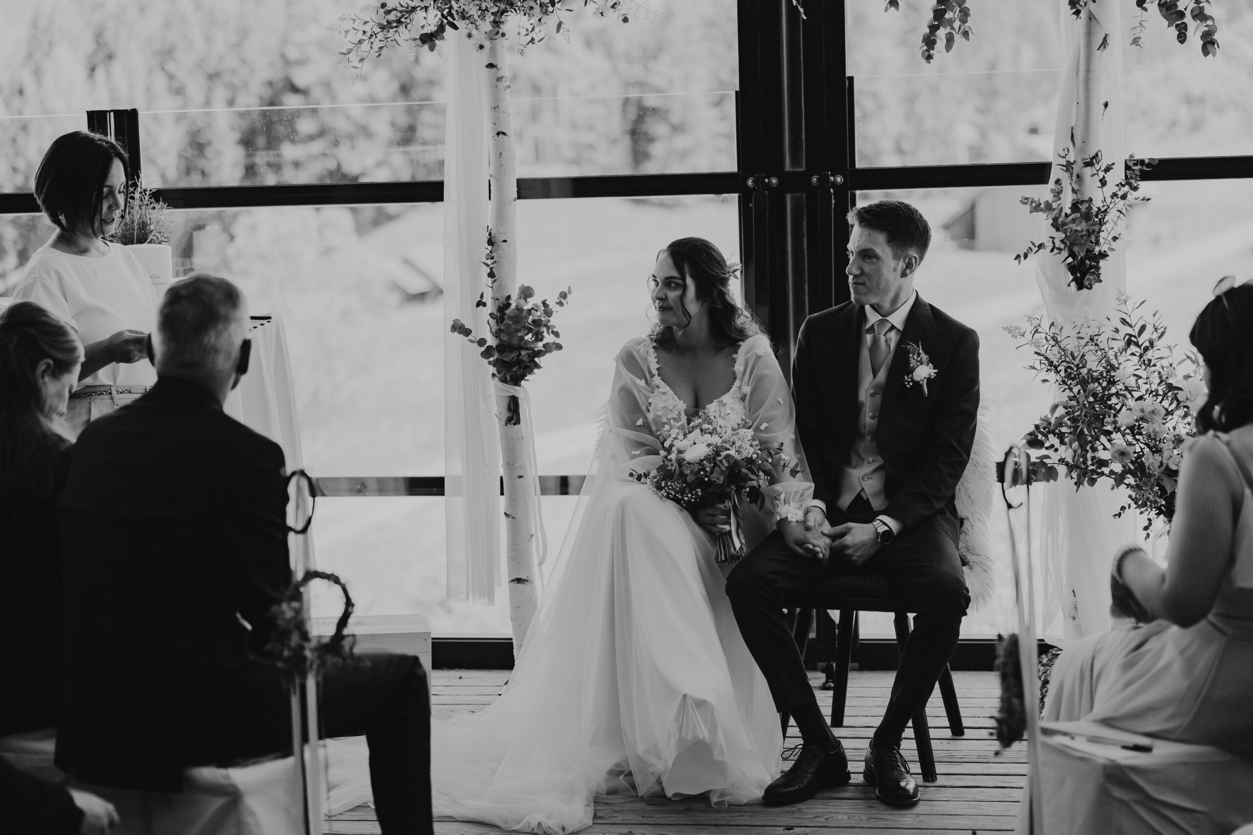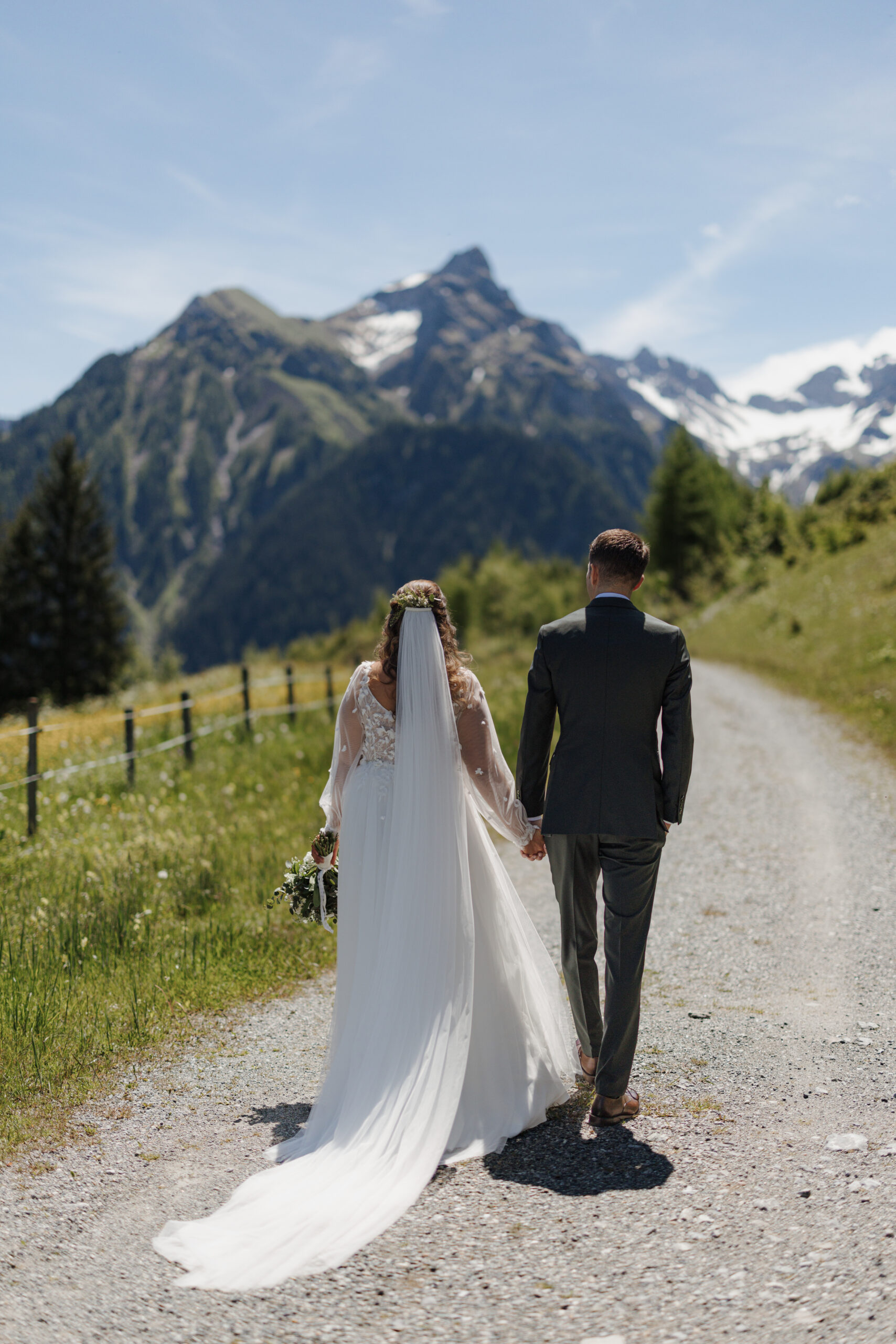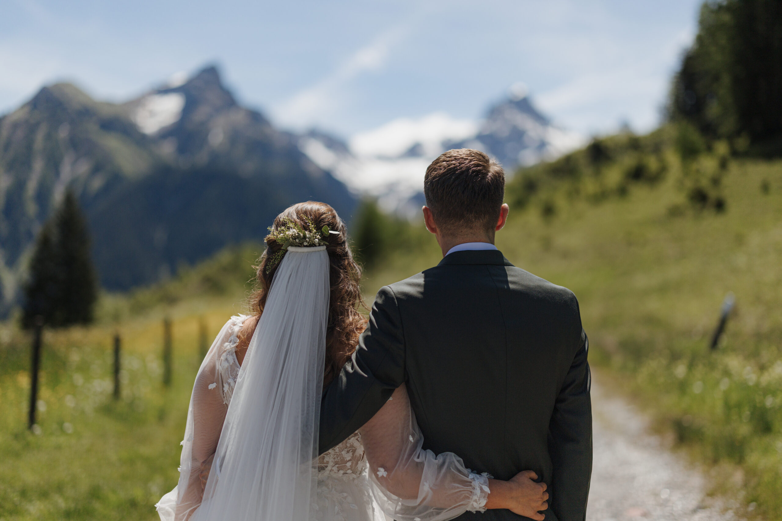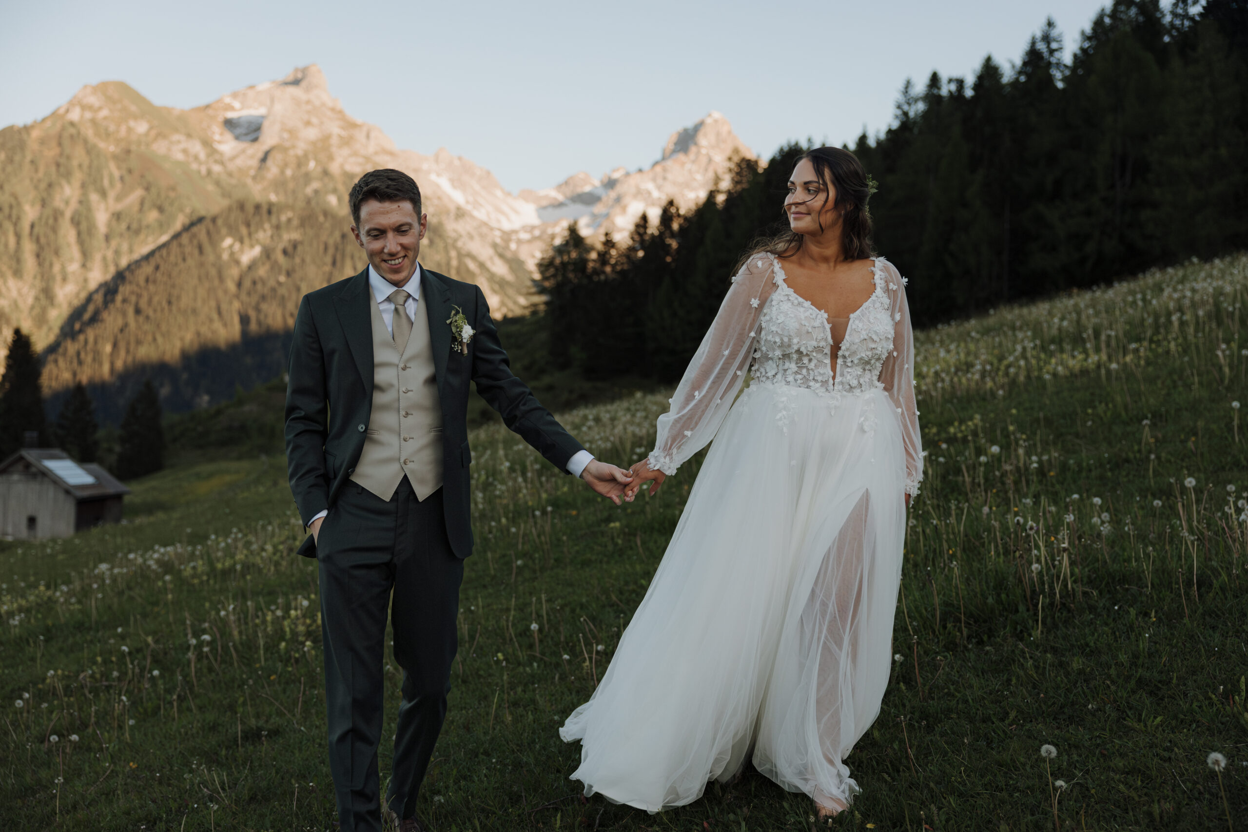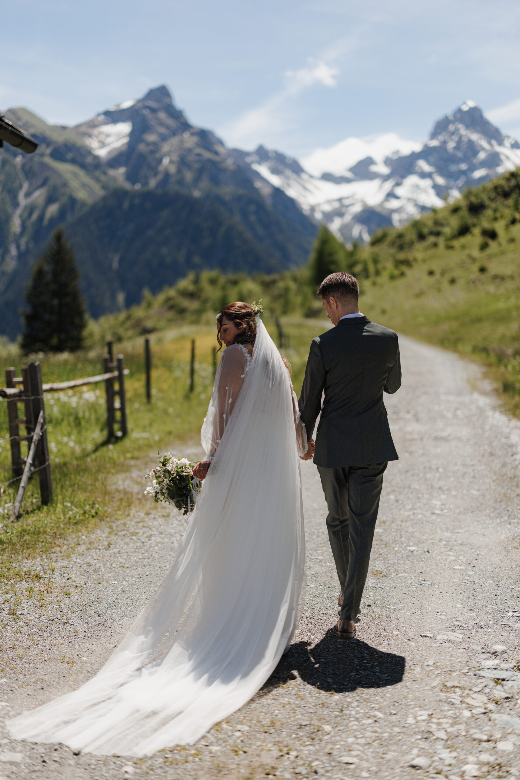 The magic of the day was already palpable during the emotional first look shoot surrounded by majestic peaks. The free wedding ceremony with a view of the Zimba touched us with a perfect blend of warmth, humor and genuine emotion.