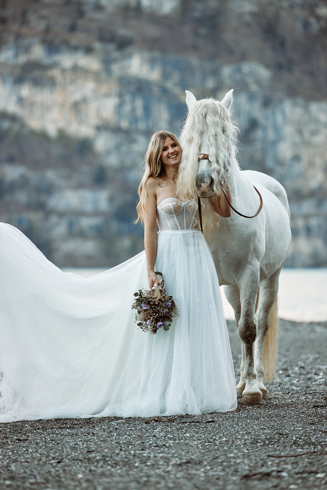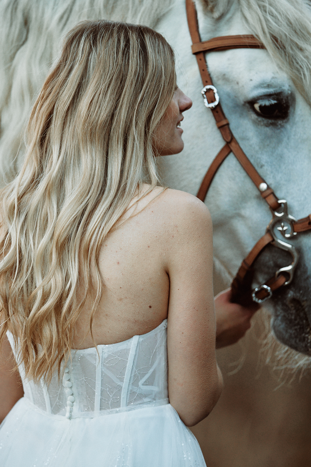 The focus here was clearly on the moments surrounding the bride and groom and the horse. There are no guidelines as to how the animal should be positioned and this is exactly what creates the natural and genuine emotions.
