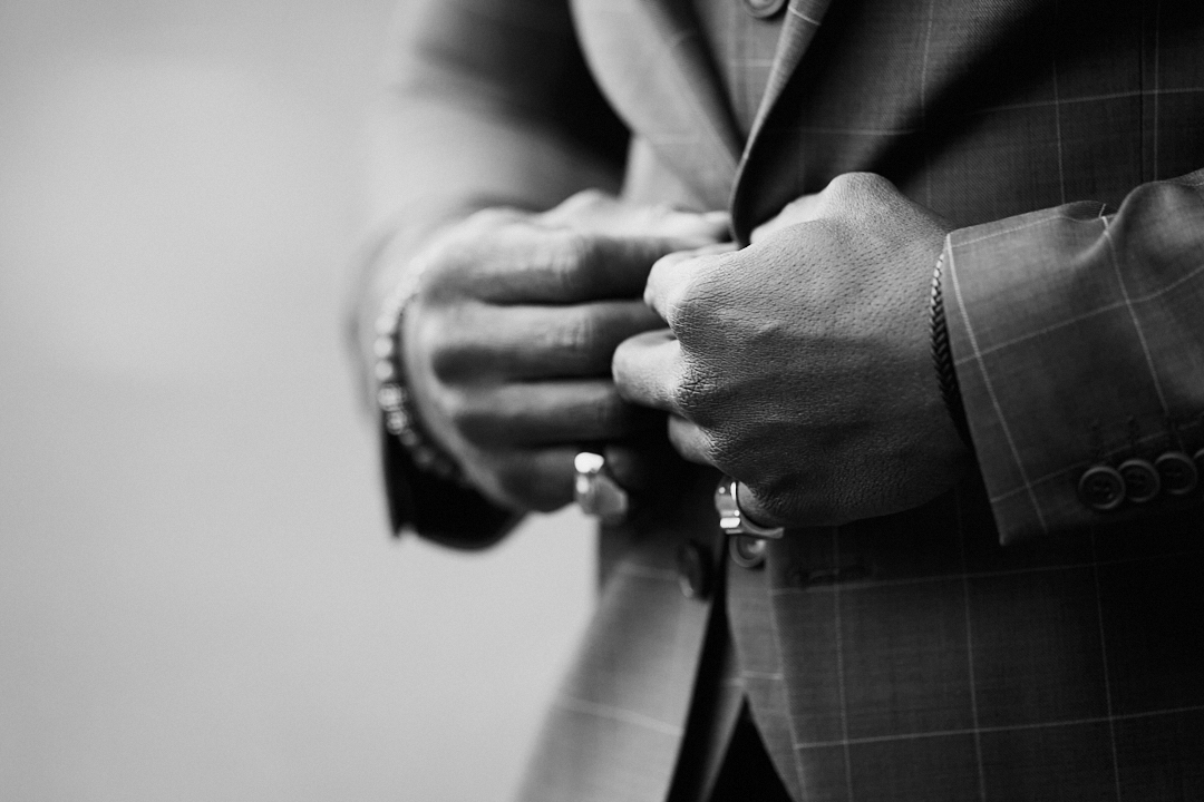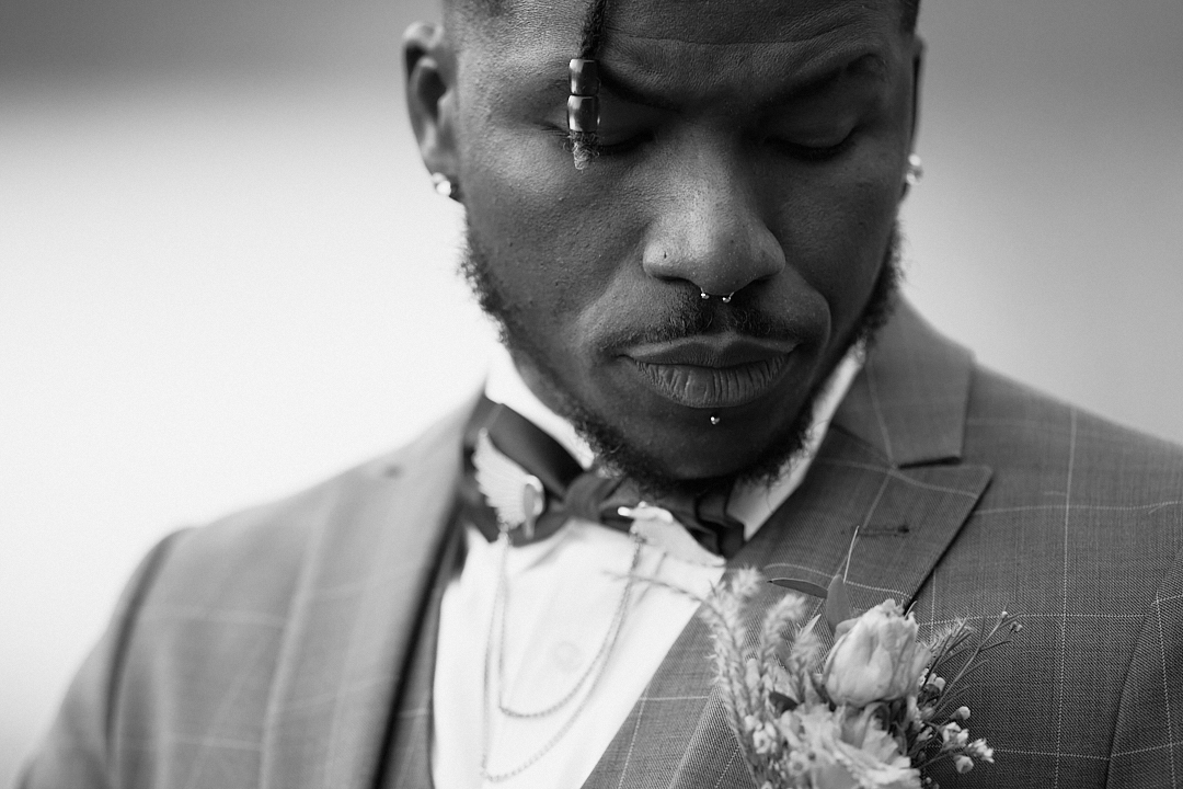 A super elegant and modern wedding dress and a groom in a cool suit made the setting perfect.