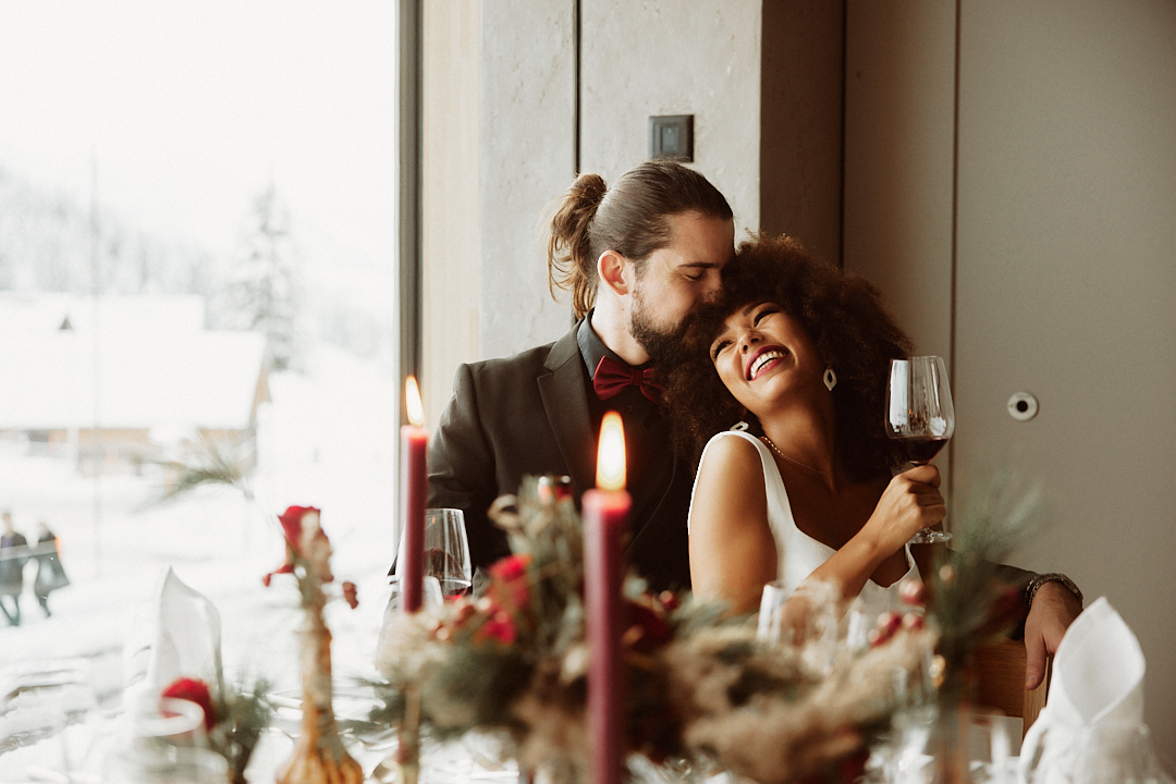Your celebration can take place at over 2000 m above sea level directly on the mountain or in a chic hotel at the foot of the mountain, which is still around 1300 m above sea level. Nothing stands in the way of an elegant and chic winter wedding here.