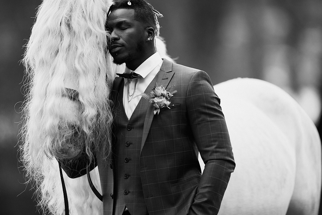 Der Fokus lag hier ganz klar auf den Momenten rundum das Brautpaar und dem Pferd. Da gibt es keine Vorgaben, wie sich das Tier platziert und genau dadurch entstehen dann auch die natürlichen und echten Emotionen.