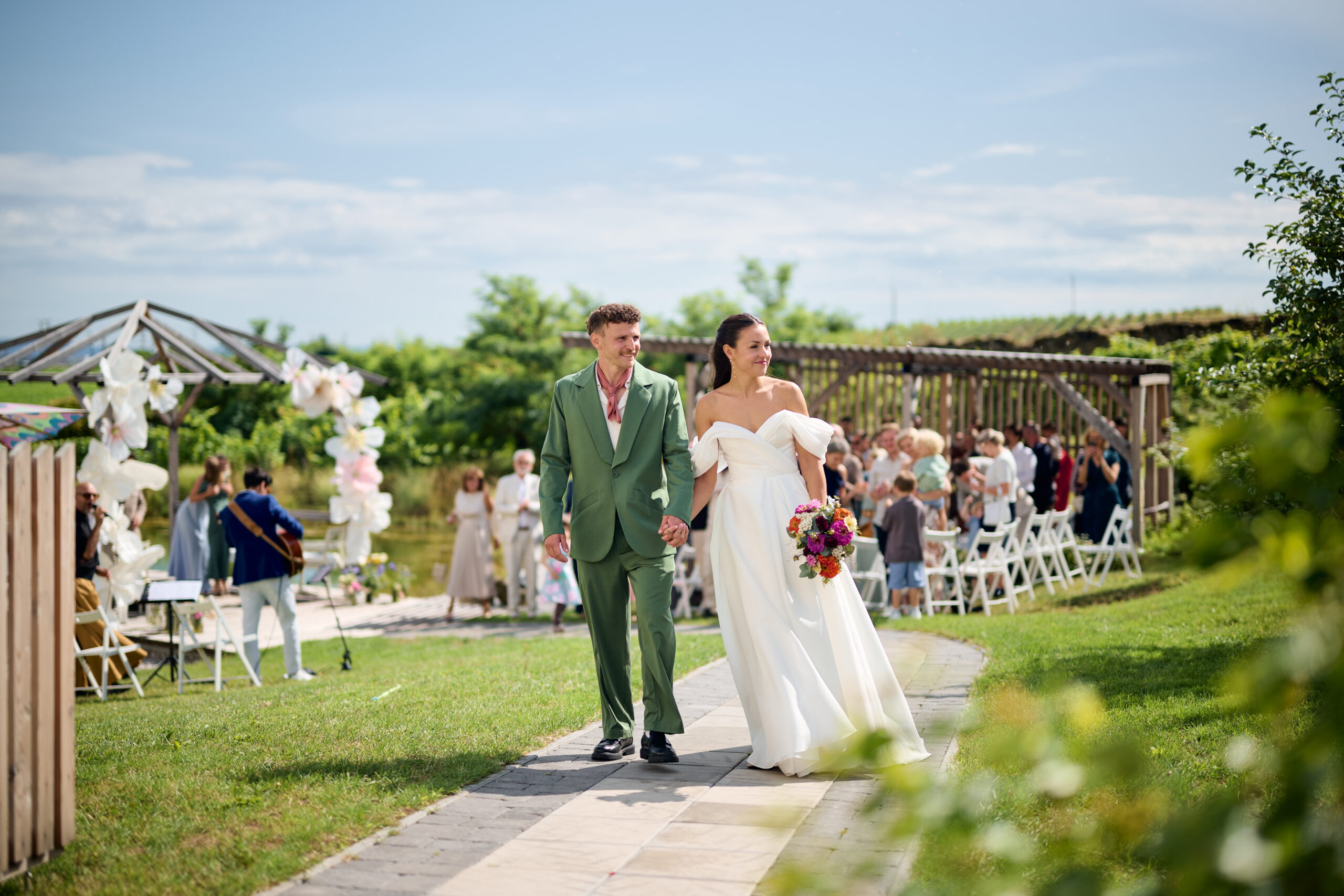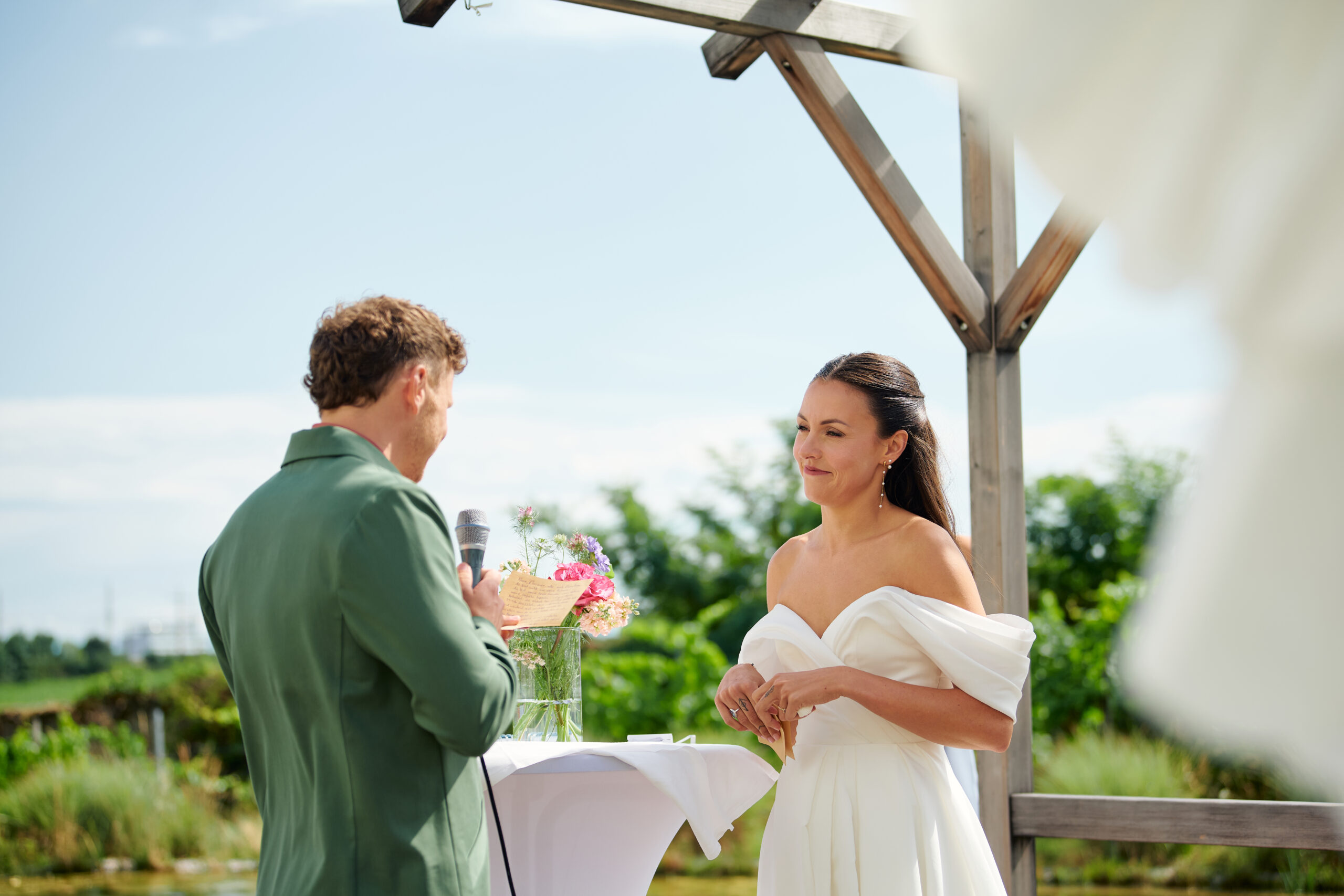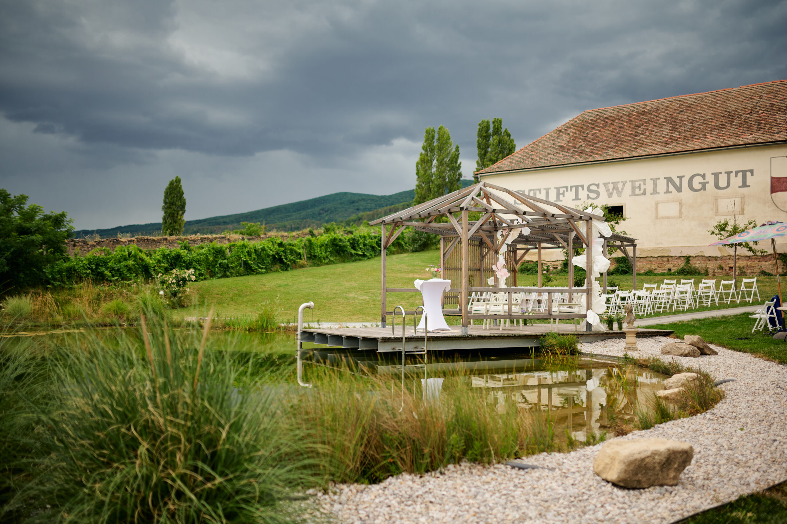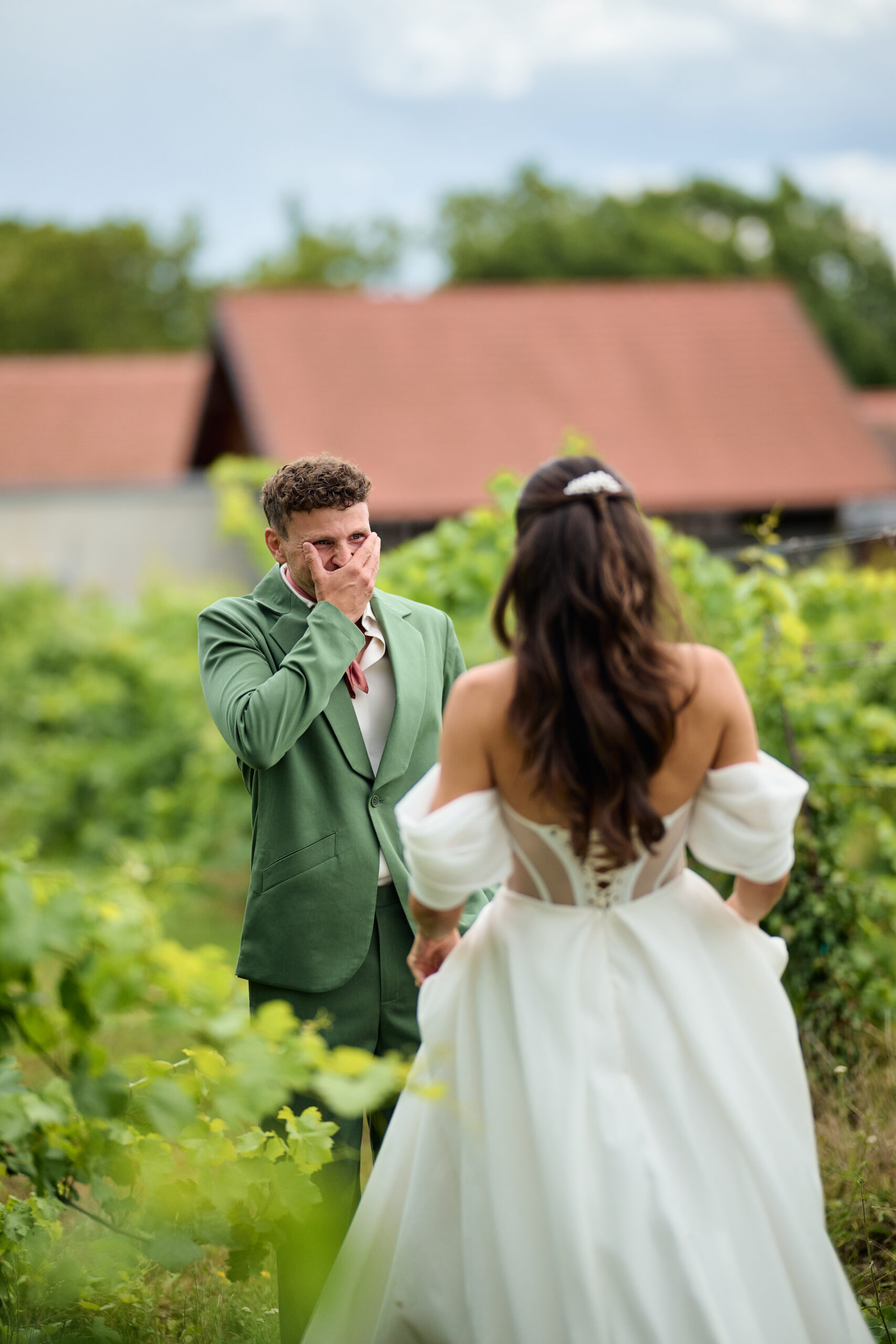 Der First Look zwischen den Weinreben? Filmreif. Die freie Trauung? Bunt, emotional – und beinahe vom Regen gestoppt. Doch statt Stress gab’s Teamgeist: Gäste halfen spontan mit, alles draußen neu aufzubauen. 20 Minuten später? Sonnenschein, als wär nichts gewesen. Pure Magie.
