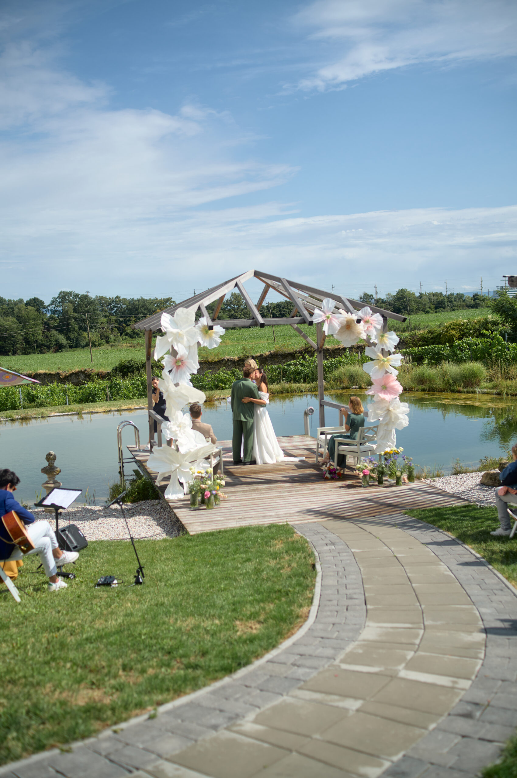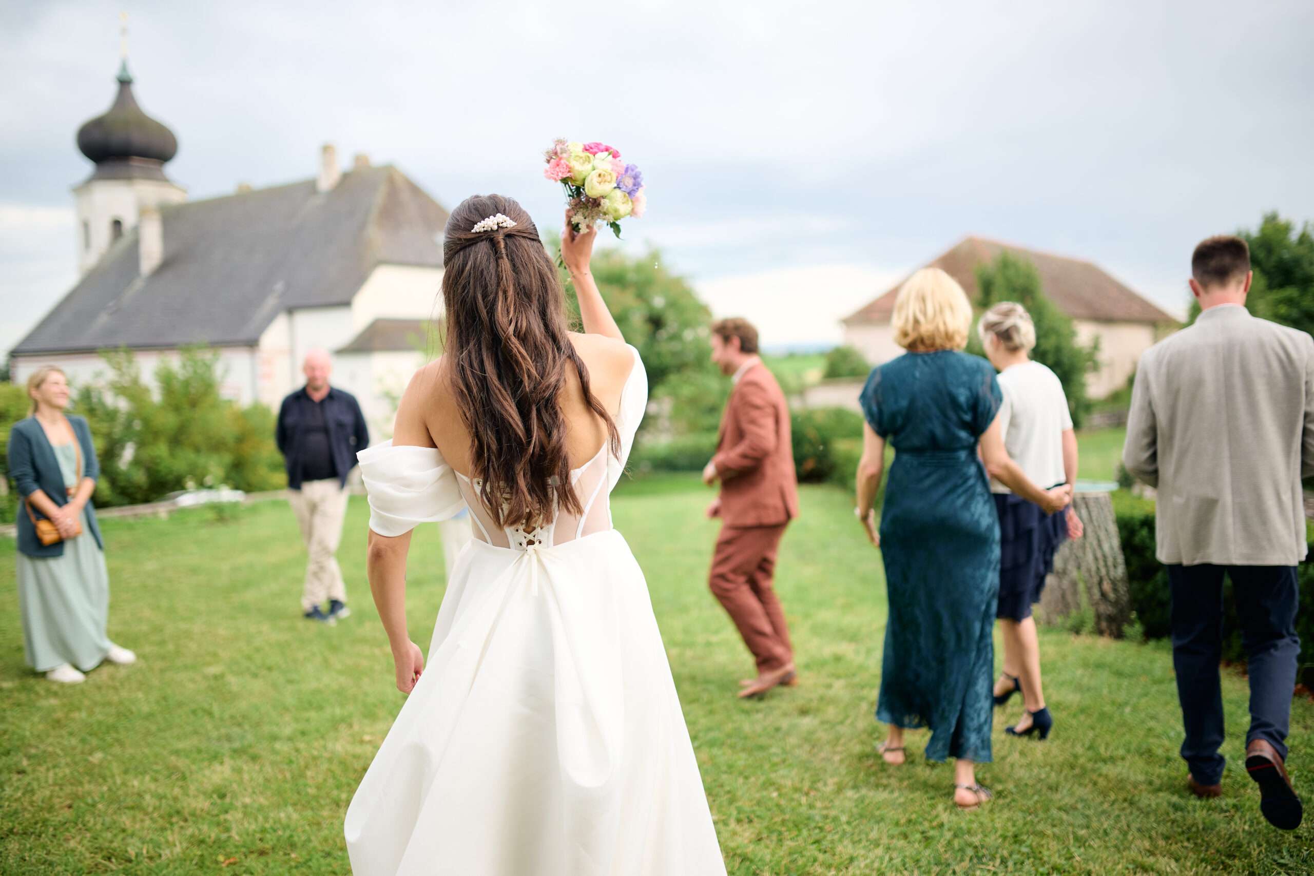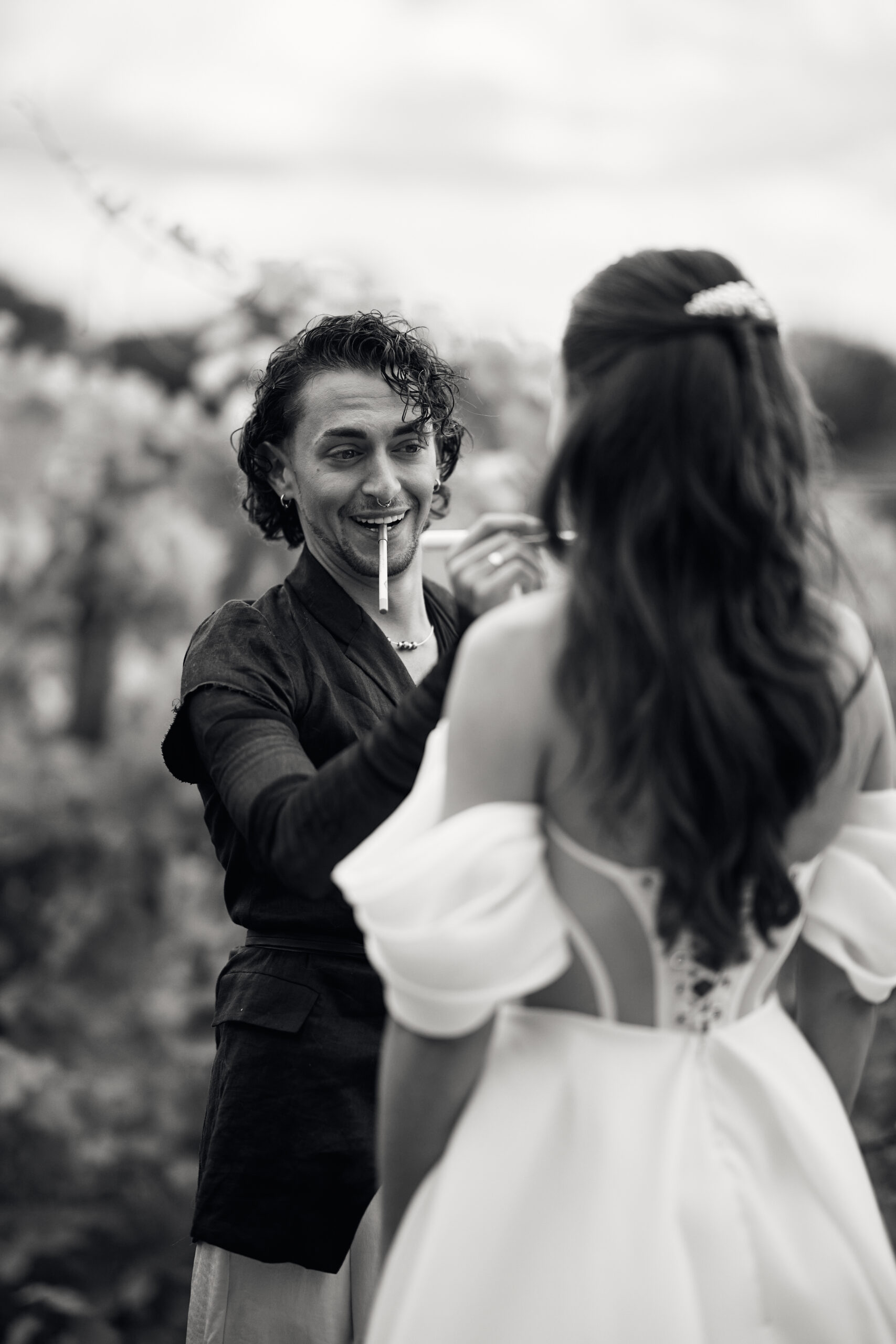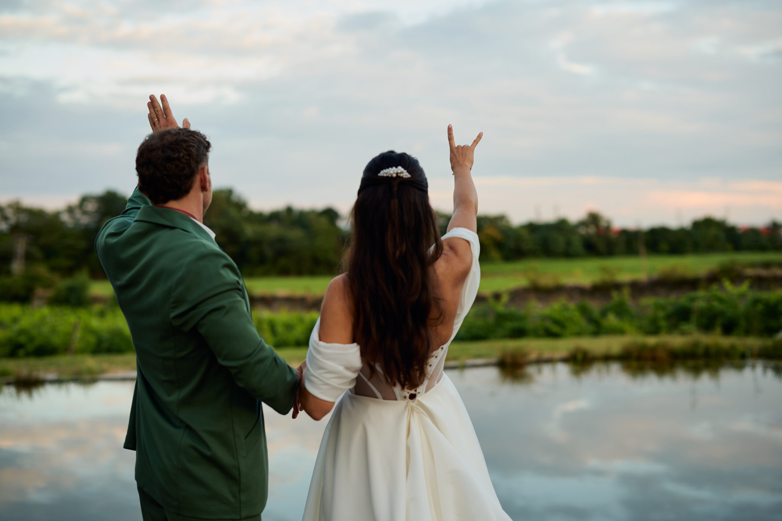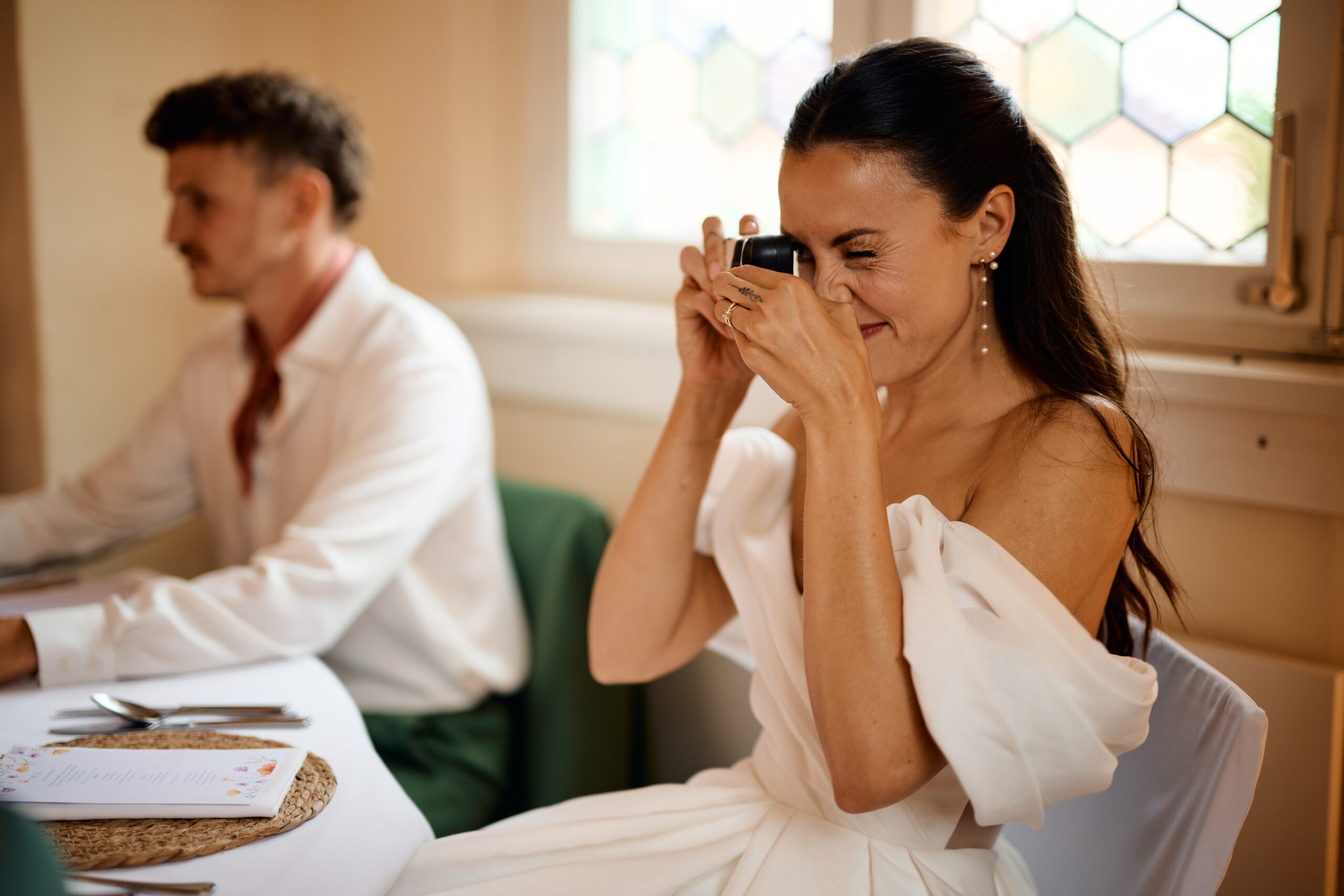 Der First Look zwischen den Weinreben? Filmreif. Die freie Trauung? Bunt, emotional – und beinahe vom Regen gestoppt. Doch statt Stress gab’s Teamgeist: Gäste halfen spontan mit, alles draußen neu aufzubauen. 20 Minuten später? Sonnenschein, als wär nichts gewesen. Pure Magie.
