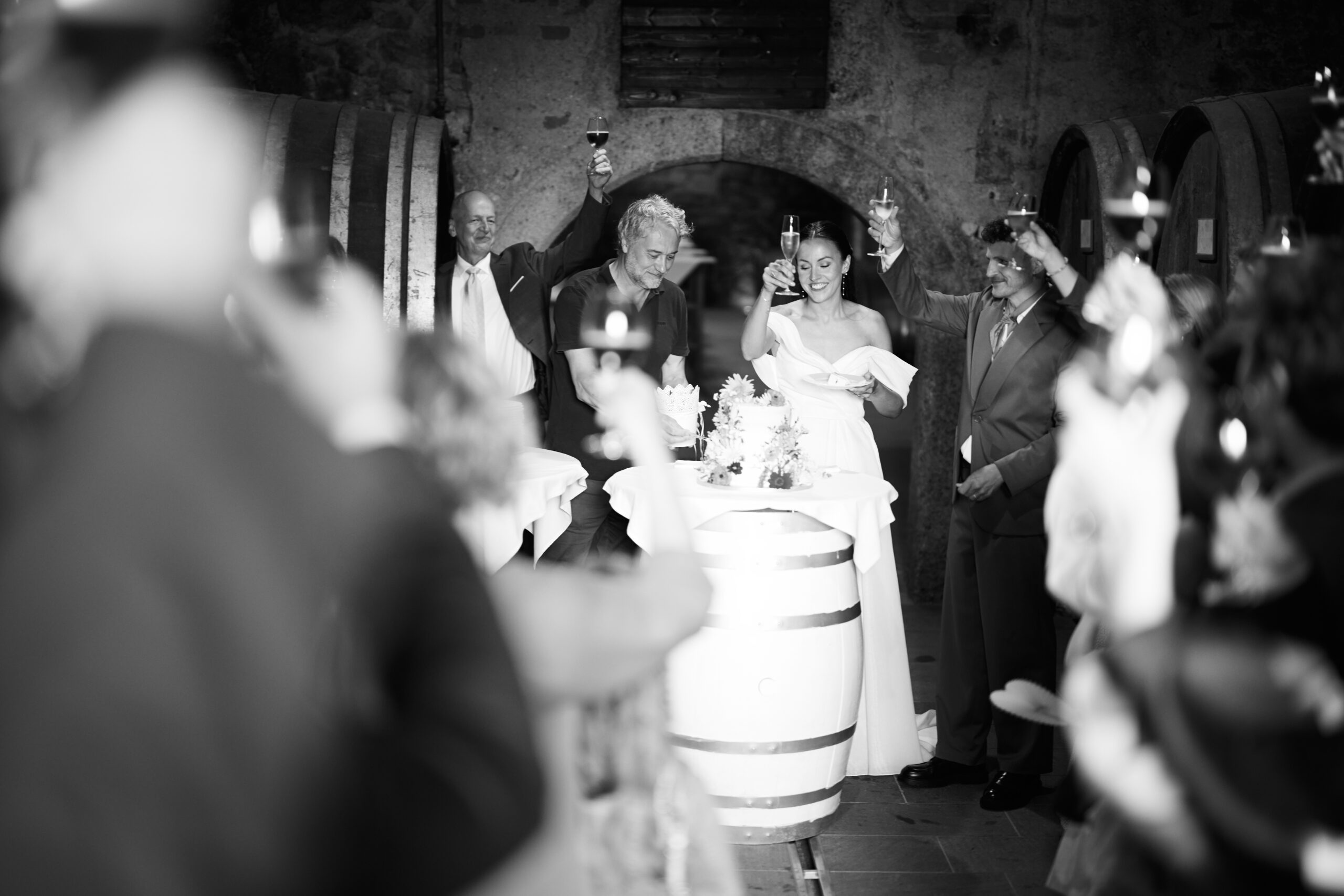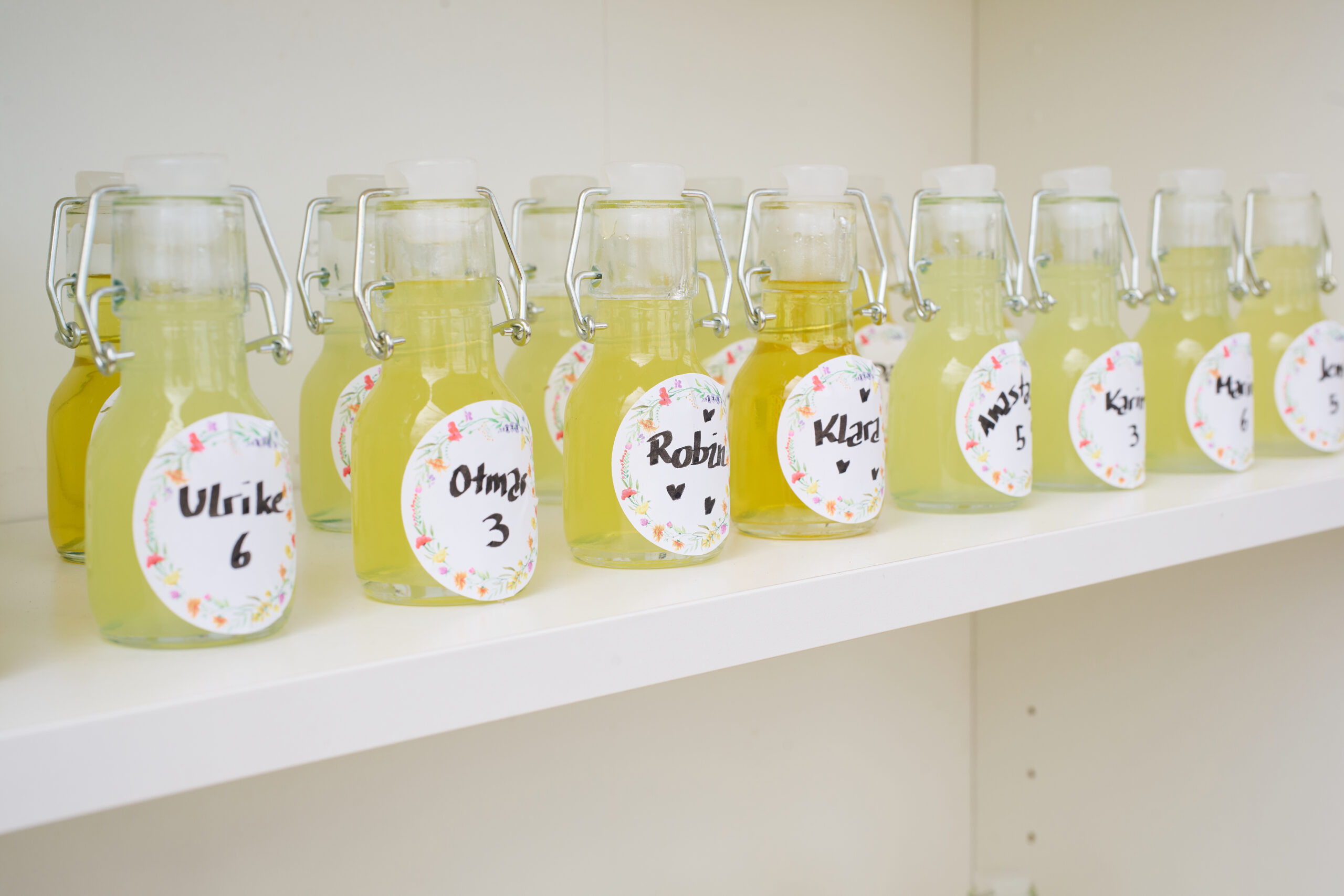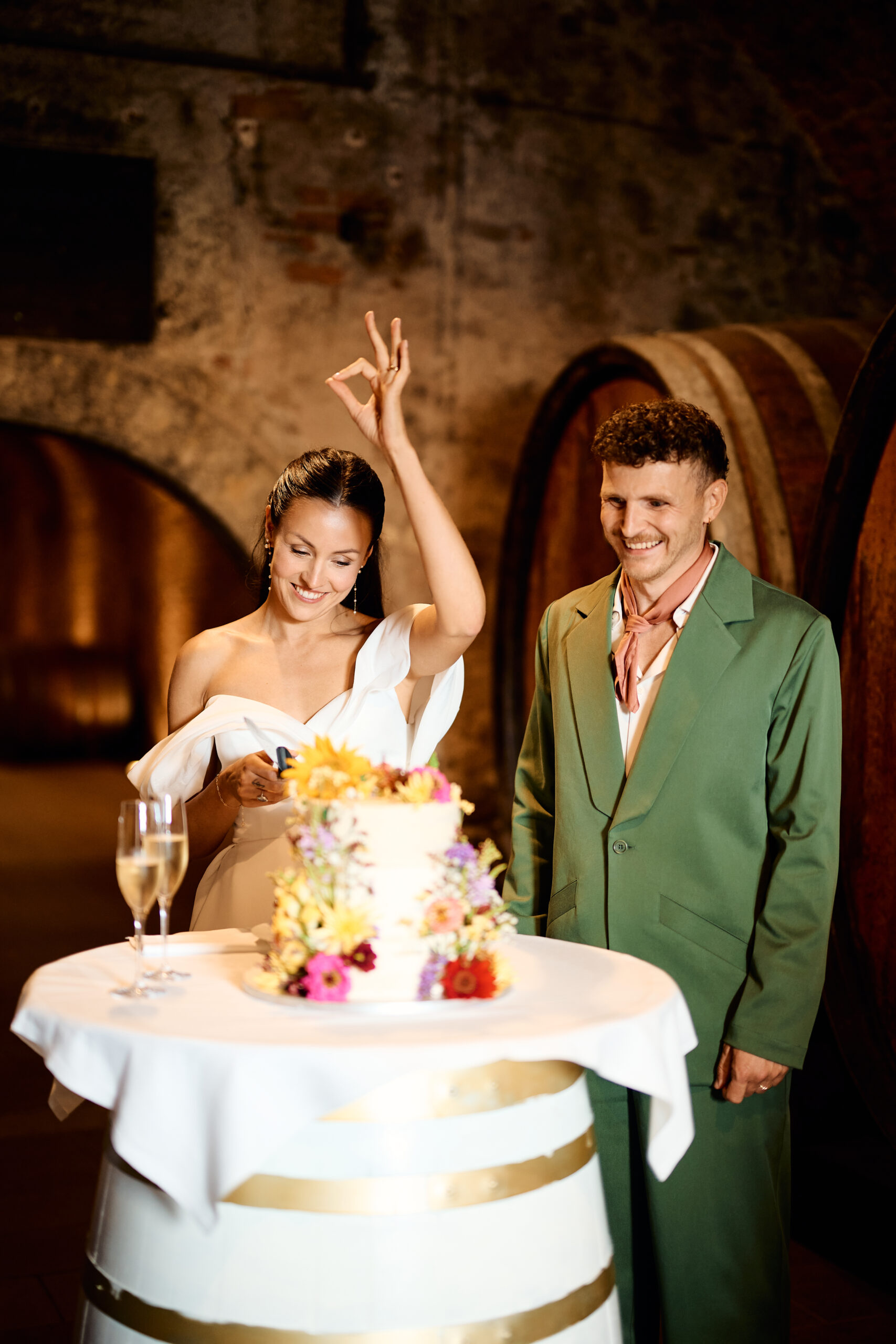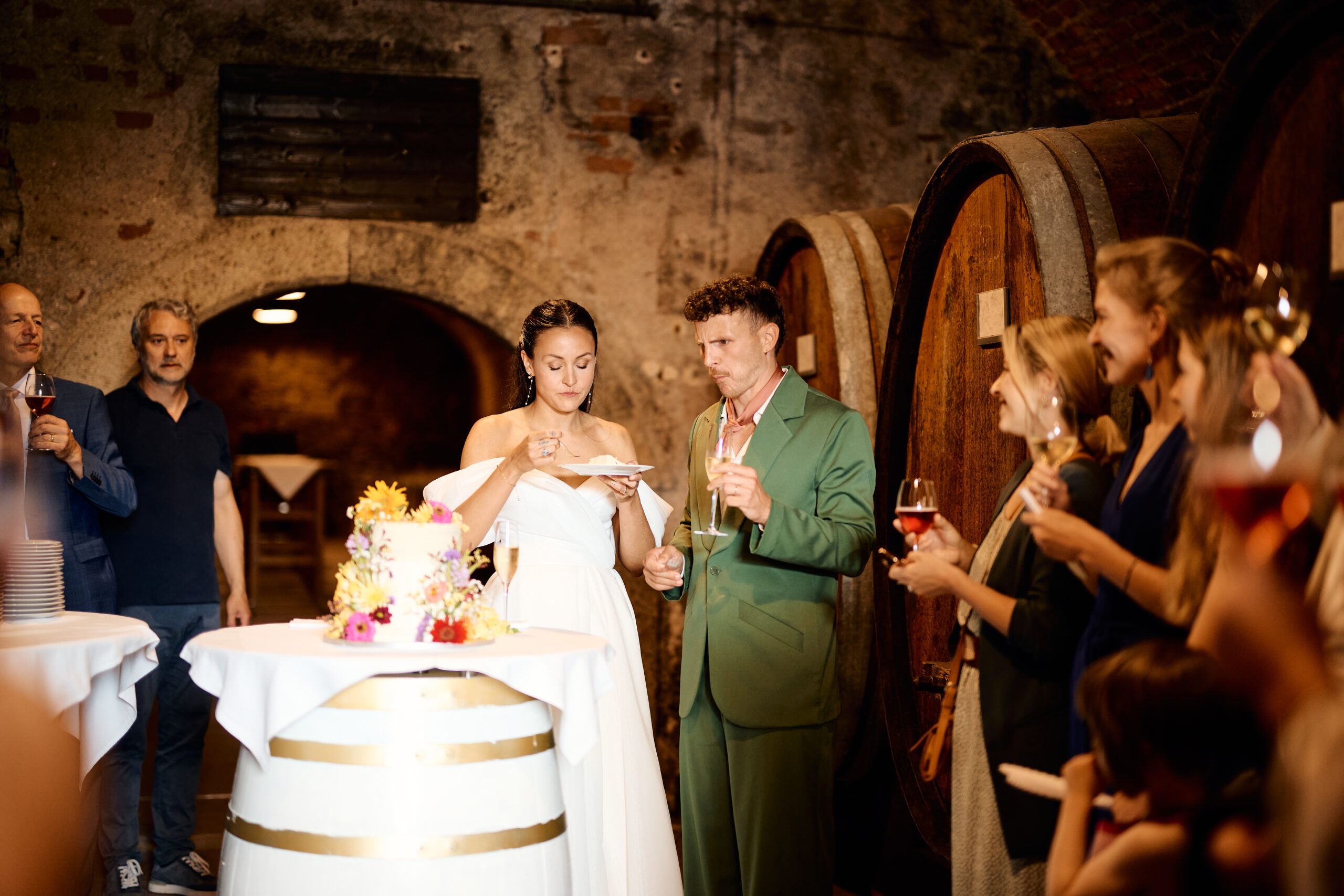 Im Weinkeller wurde die Torte angeschnitten, es gab Limoncello als Gastgeschenk und als stylischen Sitzplan.