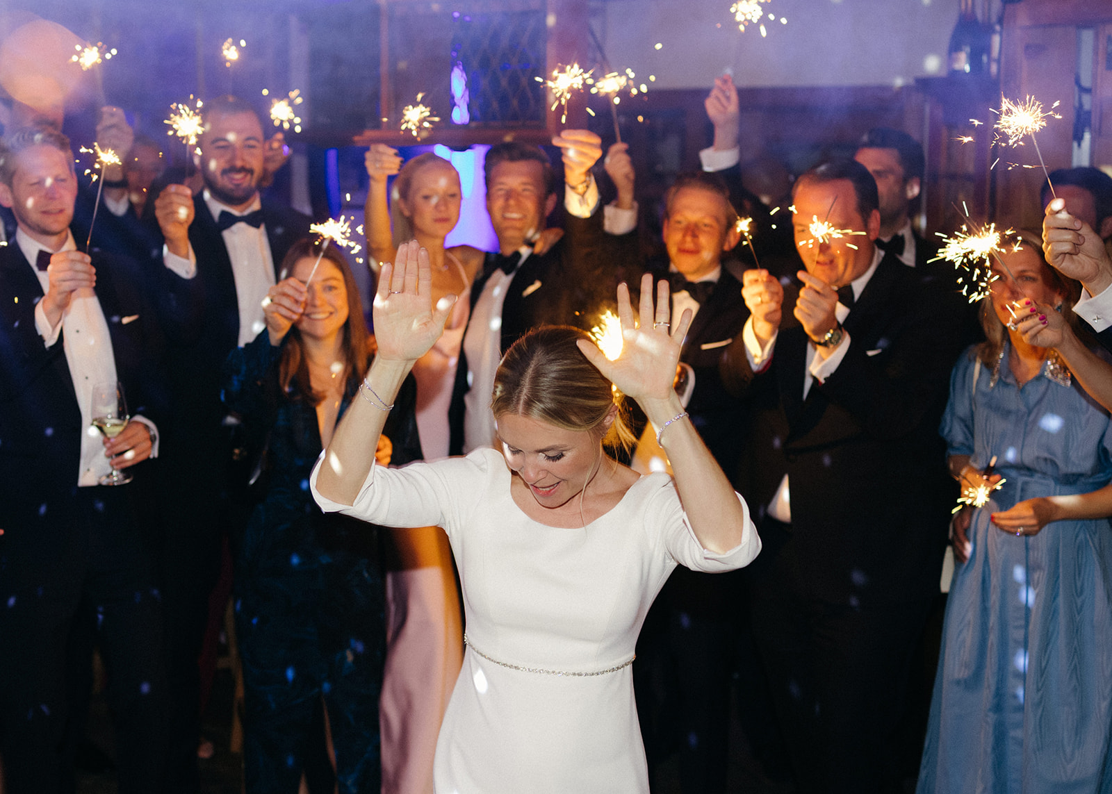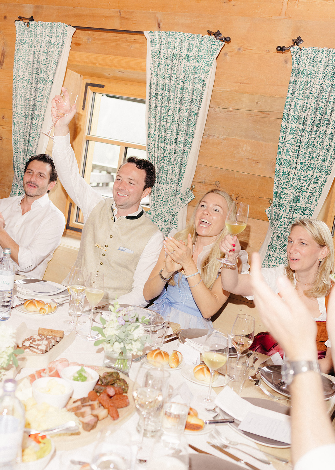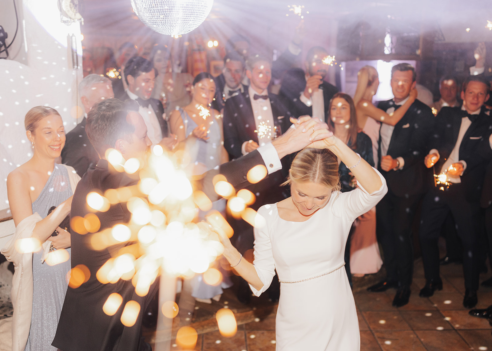 Nach einer gezielten Pause am späteren Nachmittag, kleideten sich die Gäste dem Motto entsprechend elegant – Black Tie war angesagt für das abendliche Wedding Dinner & die Party im Hotel Goldener Berg. Die Braut, gekleidet in einem traumhaften Kleid von Jesús Peiró, begeisterte mit Stil und Eleganz. DJ & Open-End-Party rundeten den Abend perfekt ab.